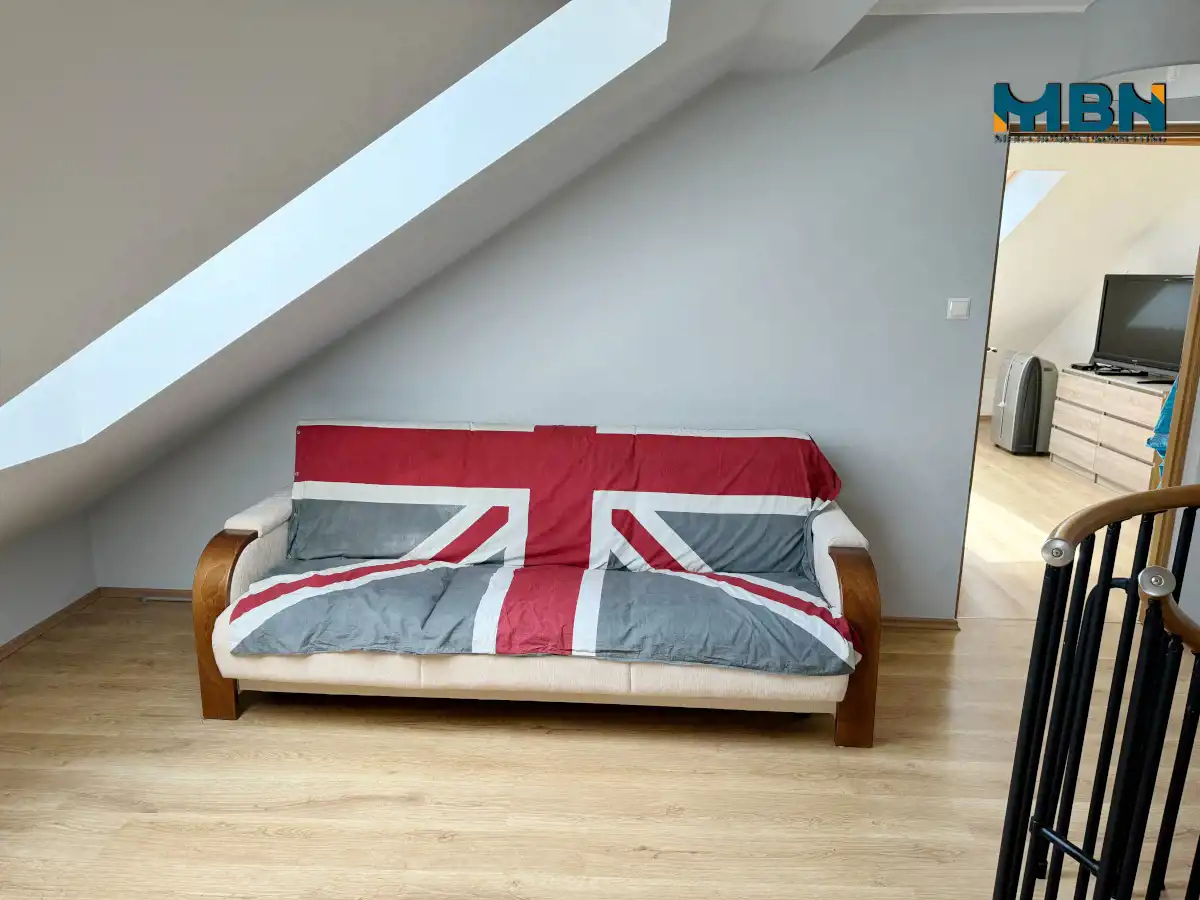 Powierzchnia użytkowa: 109,07m2; Powierzchnia całkowita to ponad 115m2 z uwagi na występujące „skosy”;