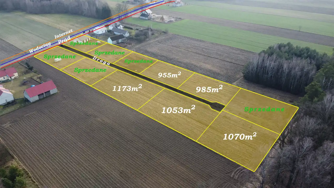Dostępne są również działki w sąsiedniej okolicy o wymiarach: 193/10 1053m2, 193/11 1173m2, 193/7 985m2 oraz193/6 955m2