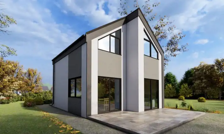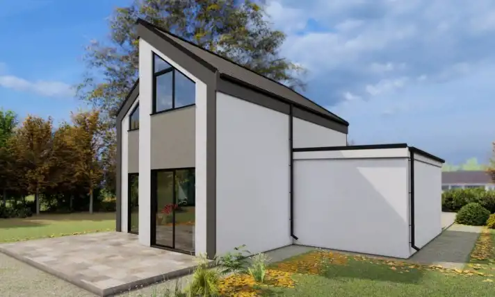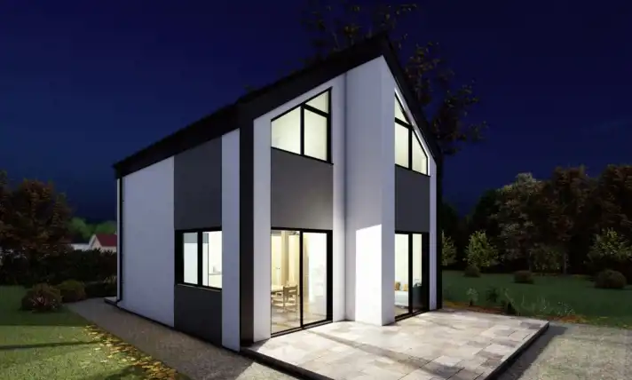 Technologia: Dom energooszczędny, modułowy, prefabrykowany w technologii drewnianej.