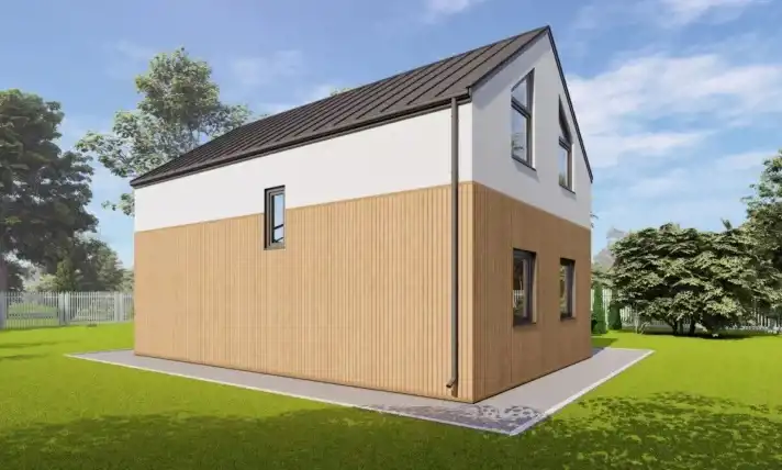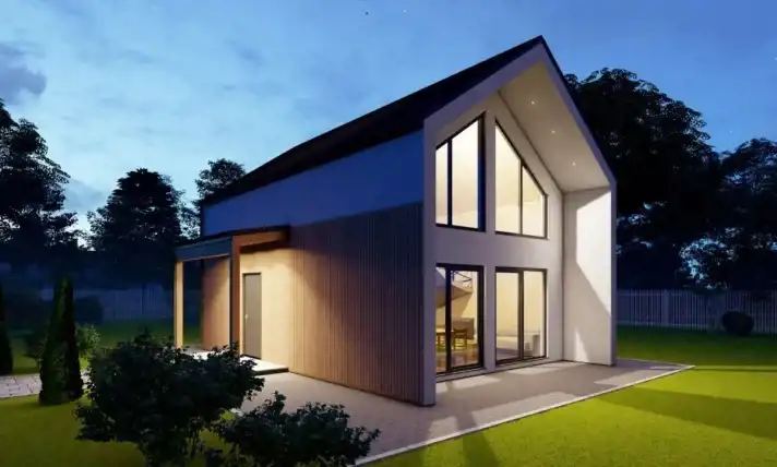 Technologia: Dom energooszczędny, modułowy, prefabrykowany w technologii drewnianej.