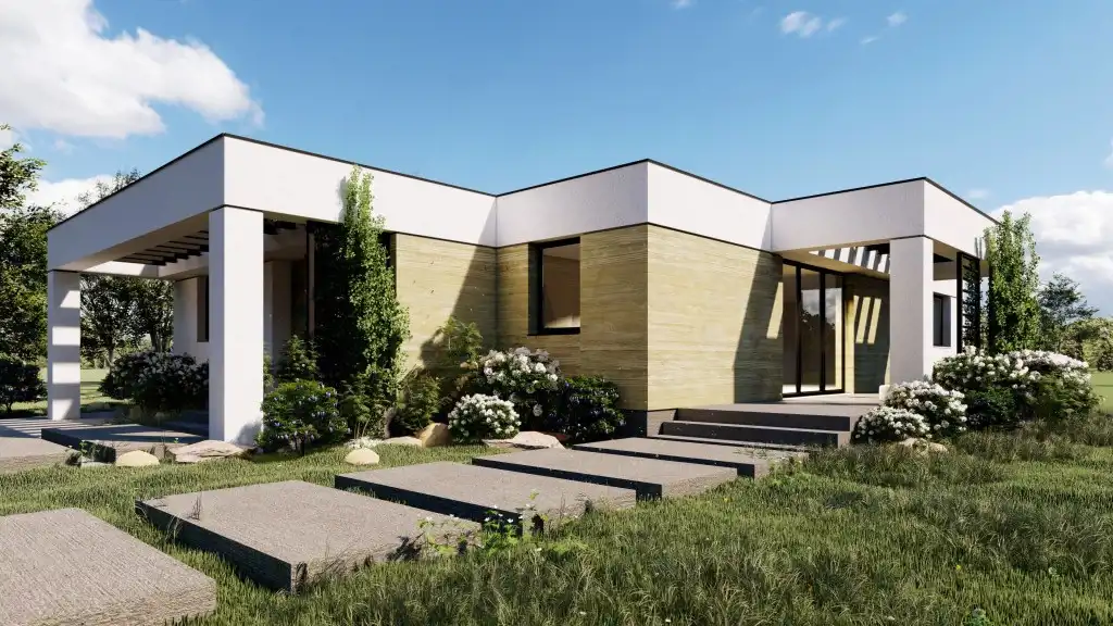 Działka jest idealna pod budowę nowoczesnego domu modułowego w stylu nowoczesne stodoły. Oferujemy szeroką gamę wyjątkowych projektów domów prefabrykowanych w technologii drewnianej, które łączą funkcjonalność z nowoczesnym designem, szczególnie domy parterowe, piętrowe z otwartą, jak i zamkniętą antresolą. Nasze domy zachwycają dużymi przeszkleniami, dzięki temu wnętrza są pełne światła i nowoczesnego charakteru.