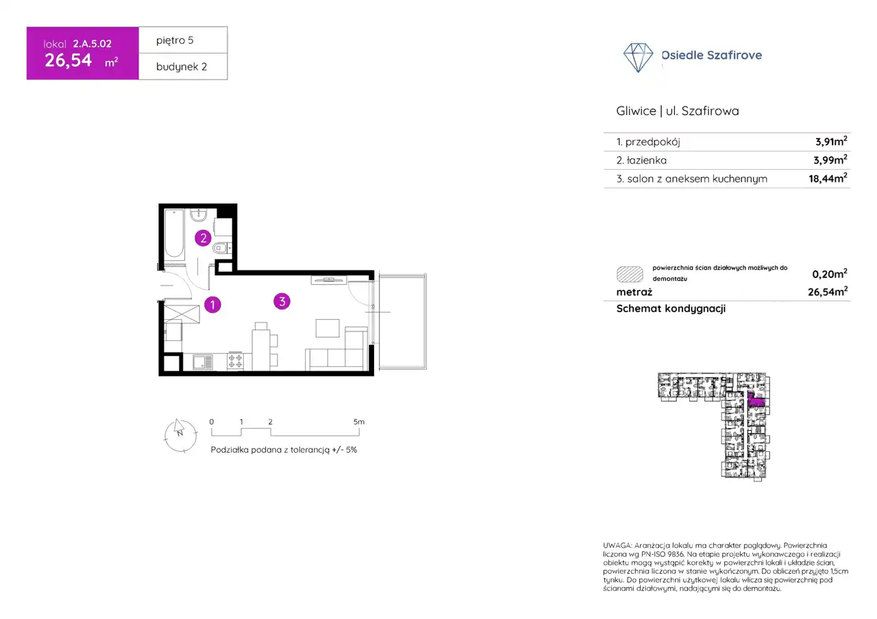 OKALIZACJA: Gliwice, ul. Szafirowa (Osiedle Szafirove) METRAŻ: 26,54 m² | PIĘTRO: OSTATNIE (5) z windą