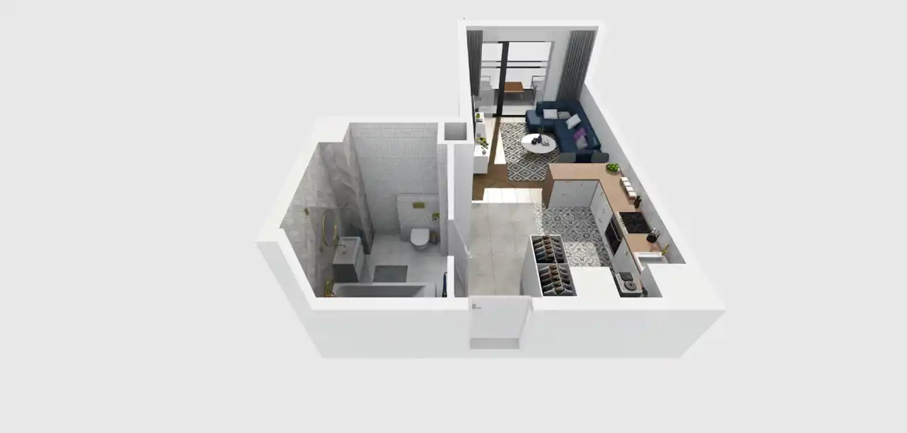 - Charakterystyka mieszkania 26.54 m2, 1 pokój
