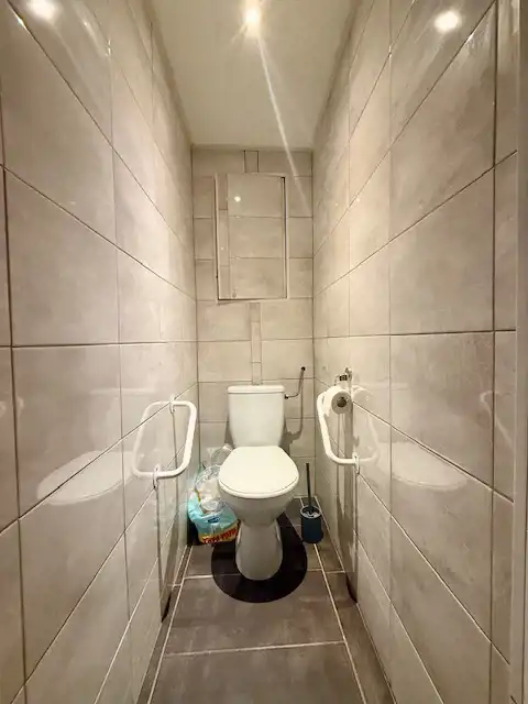 Lokal położony jest na pierwszym piętrze niskiego czteropiętrowego bloku z lat 80-tych.