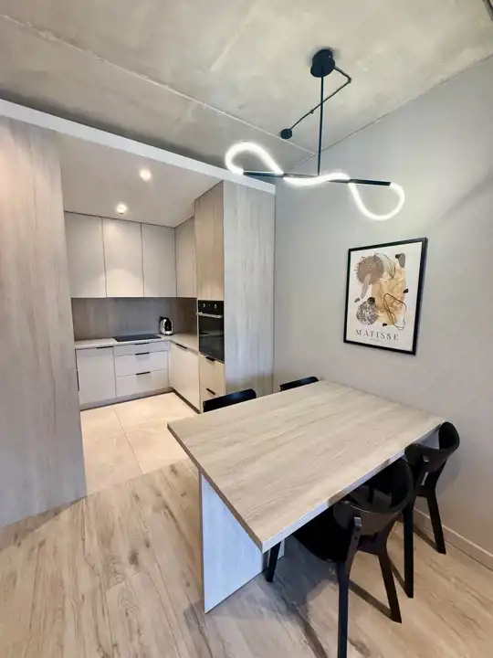 Apartament jest w pełni umeblowane oraz wyposażone z dbałością o wszelkie detale oraz elementy wykończeniowe.