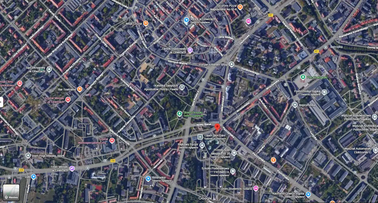 - Politechnika śląska – 500 metrów / Rynek w Gliwicach – 600 metrów