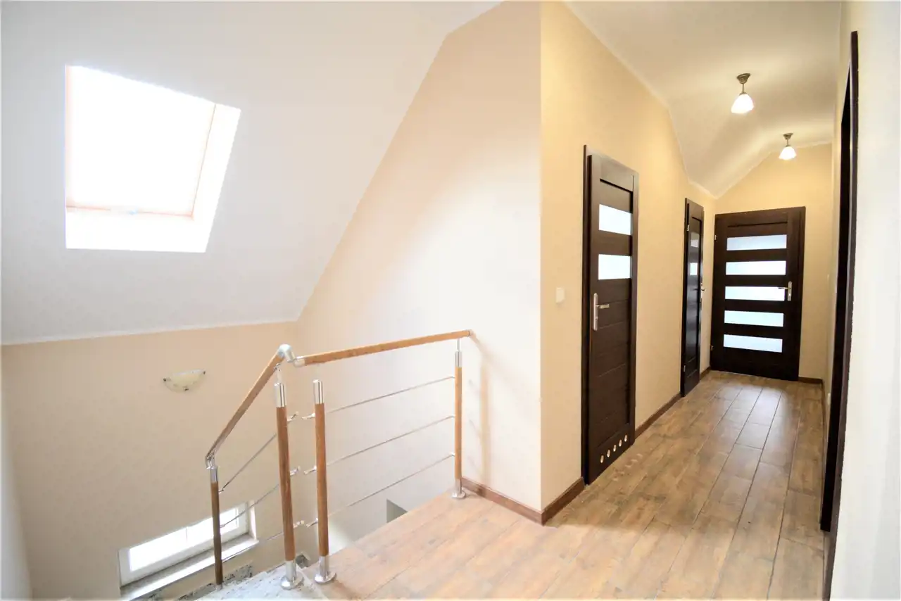 Oferujemy do wynajmu piętrowy dom wolnostojący, 6 pokoi o powierzchni 160m2, usytuowany na działce, 5ar, całkowicie ogrodzonej z miejscami parkingowymi przy posesji.