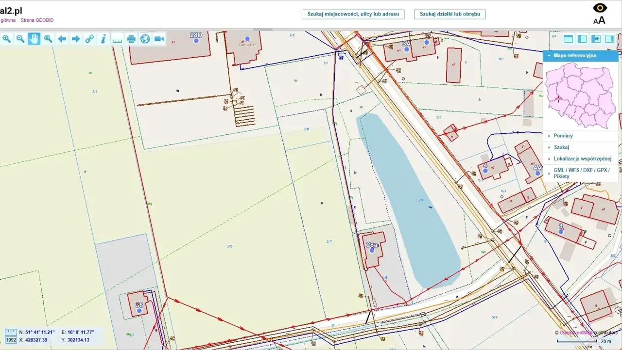 Działka o nieregularnym kształcie zbliżonym do L