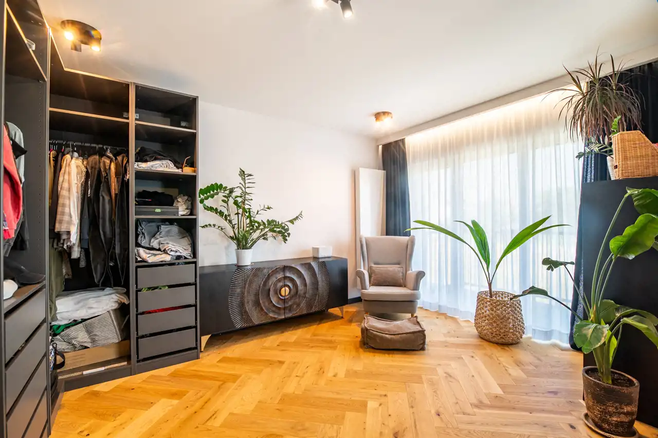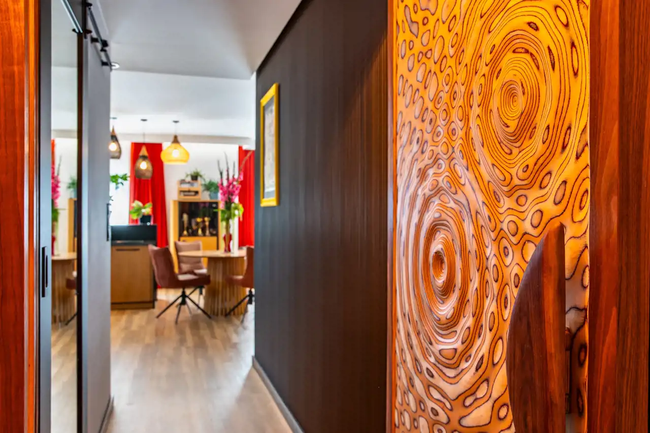 Starannie zaprojektowane wnętrza w orientalnym stylu przeniosą Cię w świat pełen spokoju i równowagi, a zastosowanie naturalnych materiałów – drewna, kwarcytu, granitu oraz wysokiej jakości wykończeń – tworzy klimat, który koi zmysły i sprzyja codziennemu odpoczynkowi.