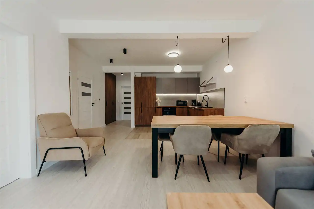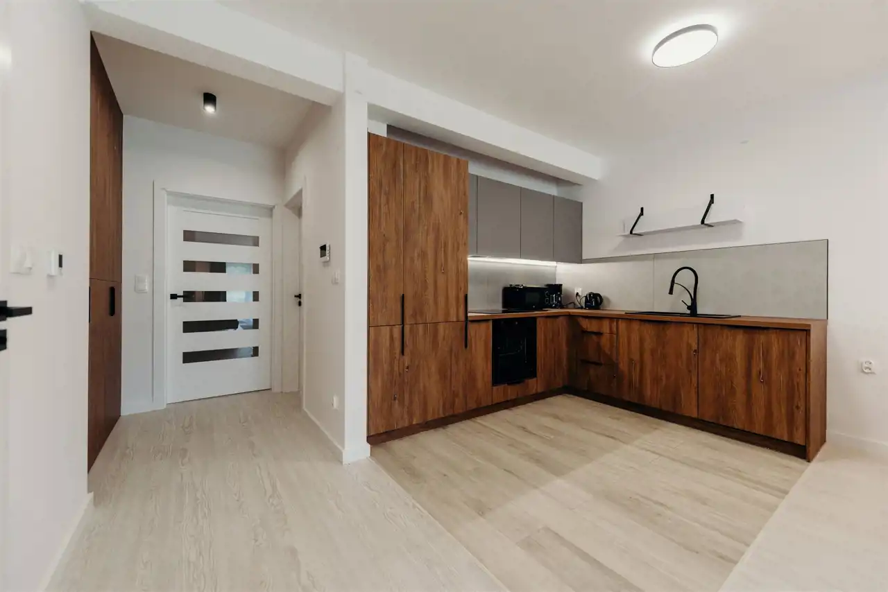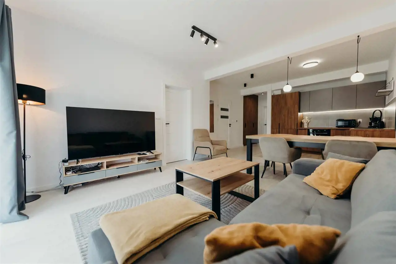 Good Life Real Estate presents for rent a 3-bedroom apartment of 60 sqm in Rudna Mała. The property is located on the 1st floor in a new building. The apartment is fully furnished and fully equipped.