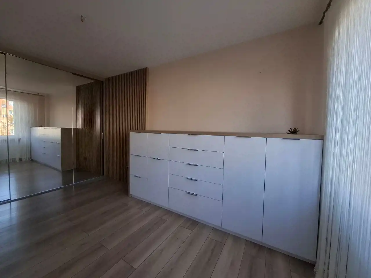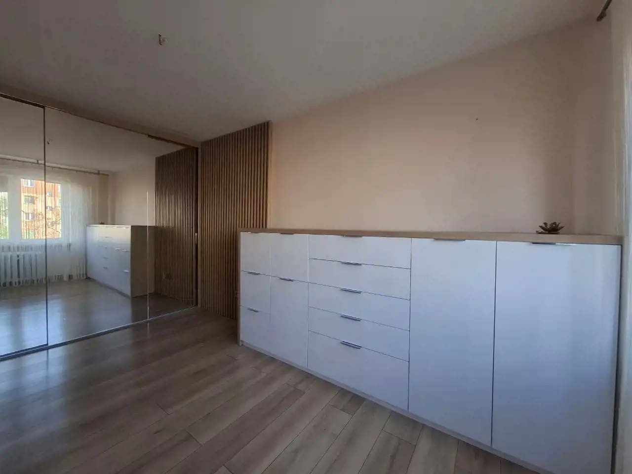 W cenie mieszkania pozostają meble kuchenne w zabudowie, duża lustrzana szafa, szafki w sypialni, zabudowała w łazience.
