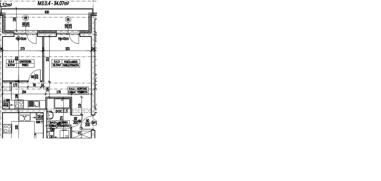 - Charakterystyka mieszkania 34.07 m2, 2 pokoje