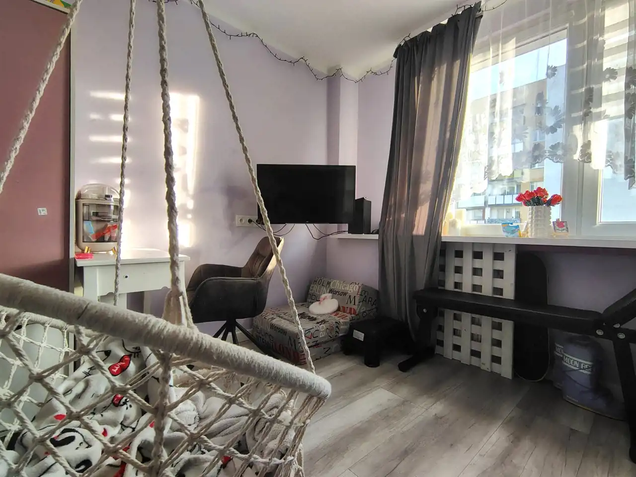 - dużego pokoju z wyjściem na balkon