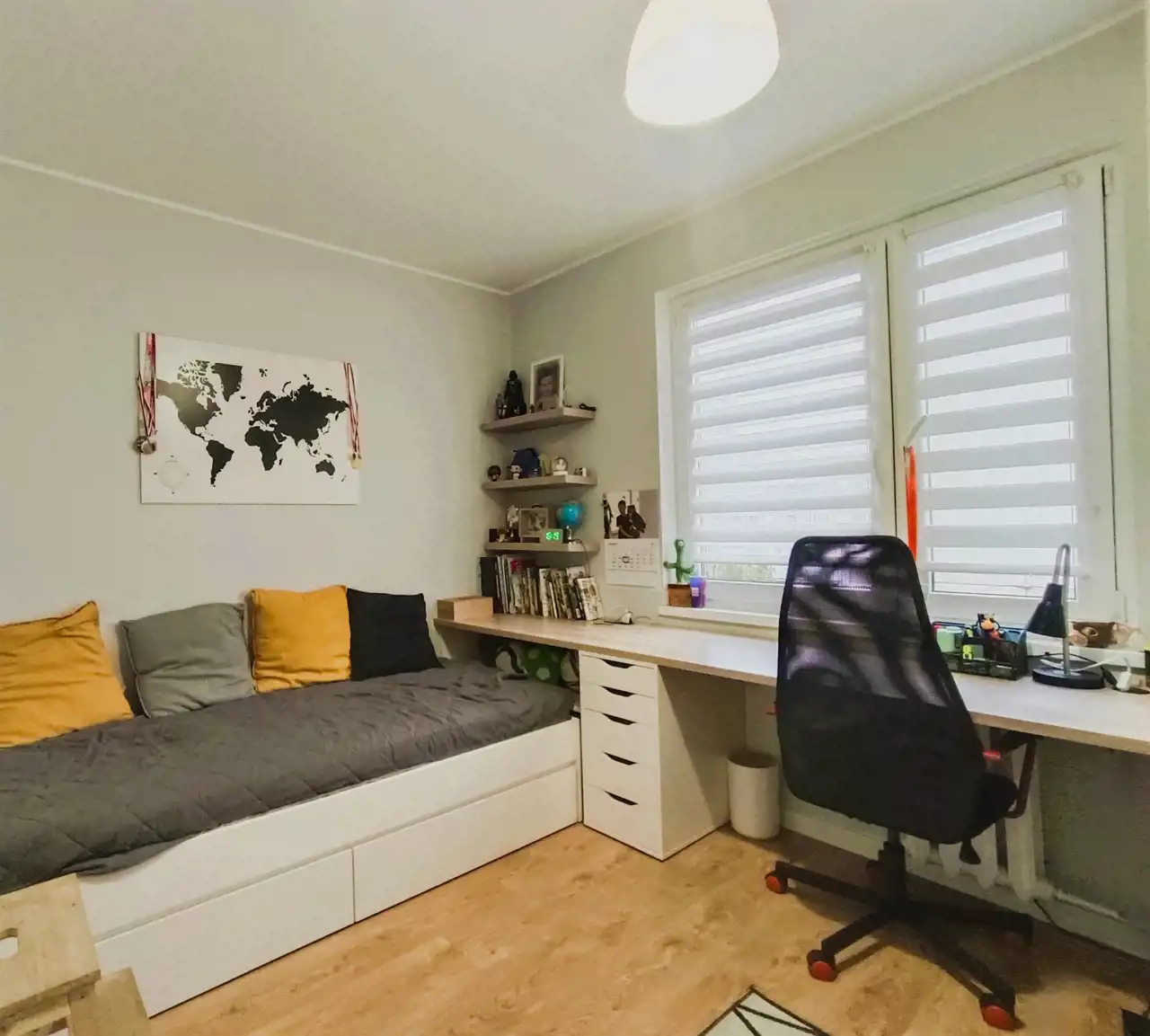 • Trzy ustawne pokoje, które mogą pełnić funkcję sypialni, pokoi dziecięcych lub biura – pełna dowolność aranżacji.