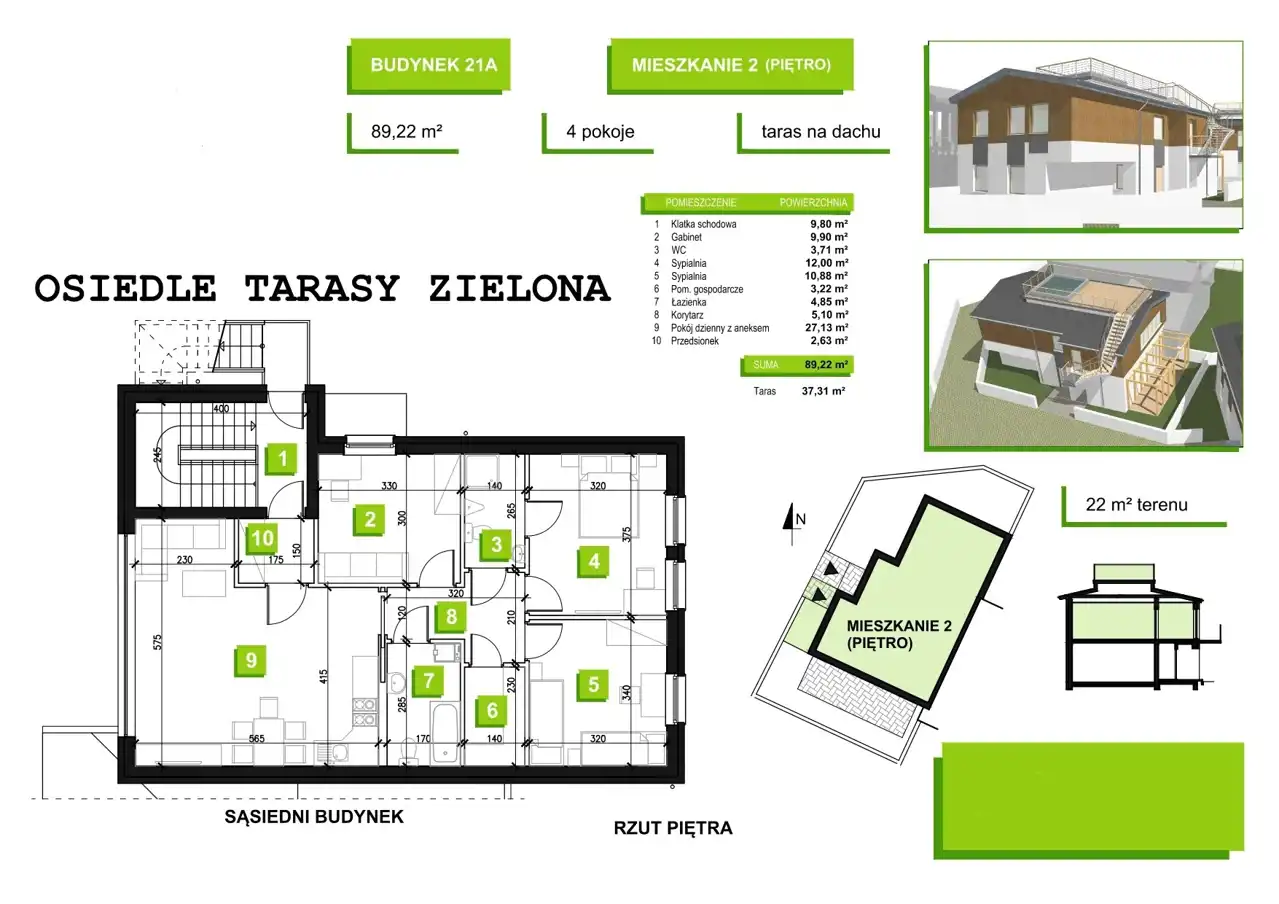Wyjątkową ofertę sprzedaży mieszkania 4 – pokojowego w stanie deweloperskim o powierzchni użytkowej 79,42 m2 przy ulicy Zielona