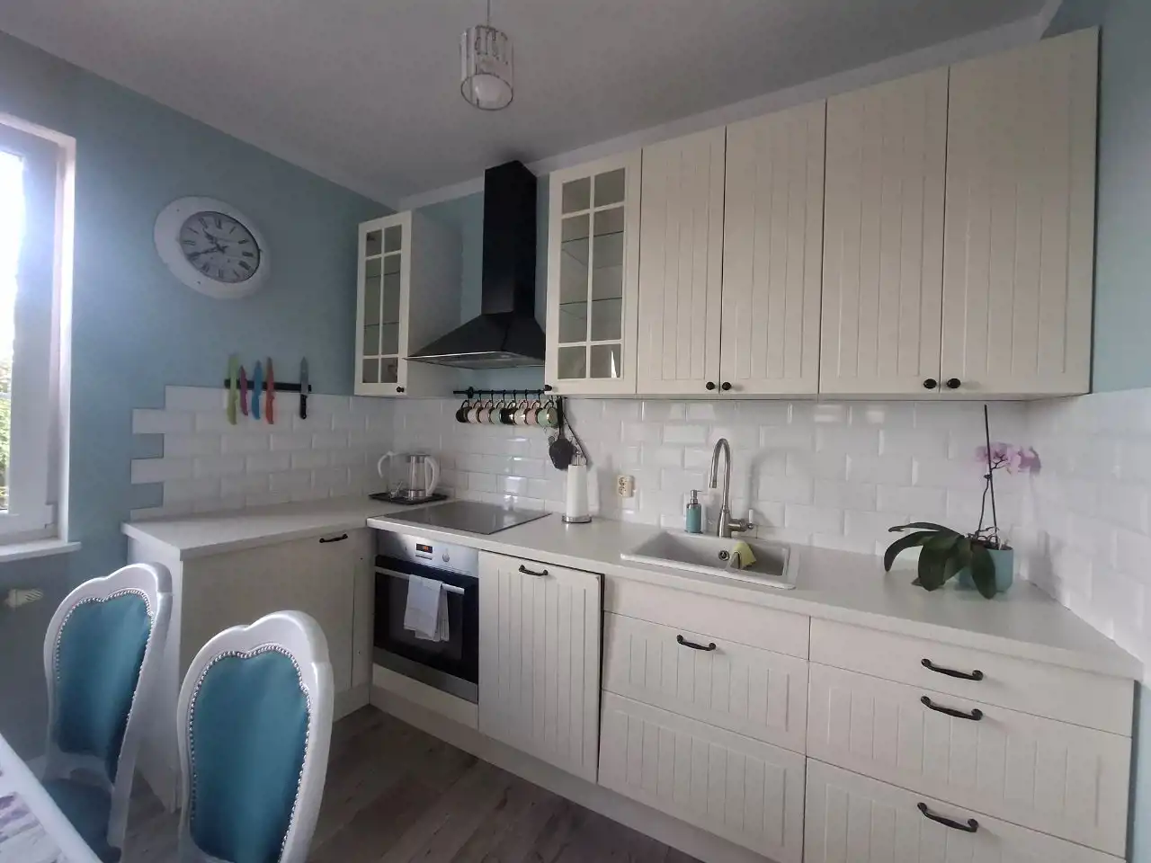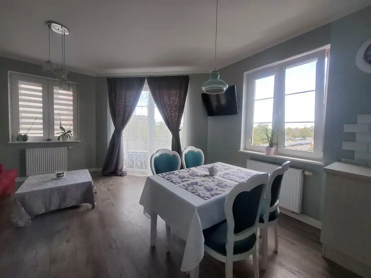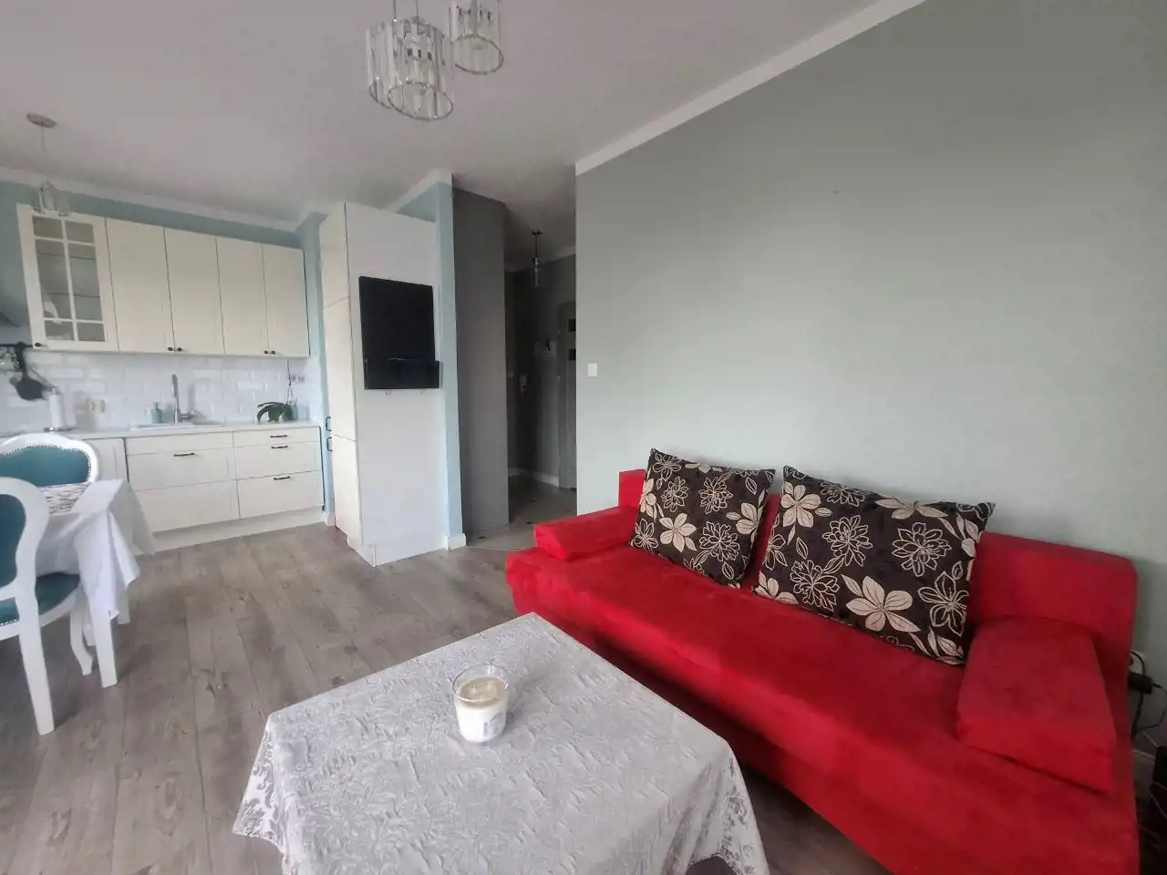 Mieszkanie z balkonem, w pełni umeblowane wyposażone wraz ze sprzętem AGD tj. lodówka , pralka, zmywarka, piekarnik, płyta indukcyjna, telewizor. W sypialni i przedpokoju duże szafy w zabudowie.