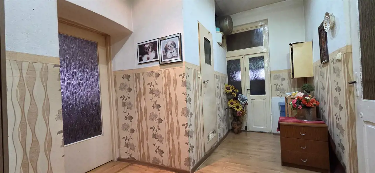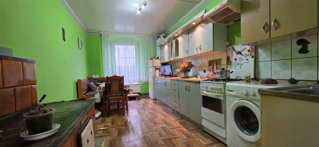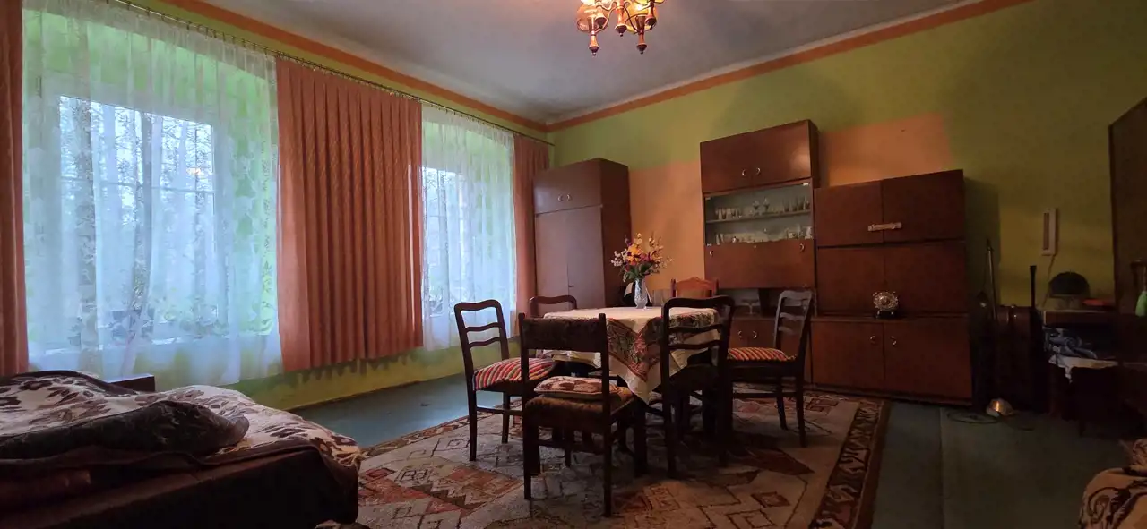 Lokal o powierzchni użytkowej 107,40 m2 składający się z trzech pokoi, kuchni, łazienki z wc i przedpokoju z przynależną piwnicą o pow. 22,80m2 garażem murowanym o pow. 12,20 m2, i strychem o pow. 12,00 m2 i kawałkiem ogródka przy samej kamienicy.