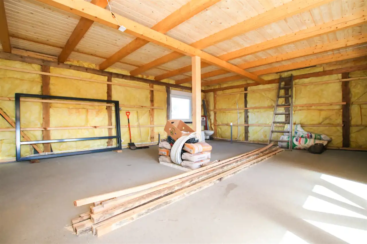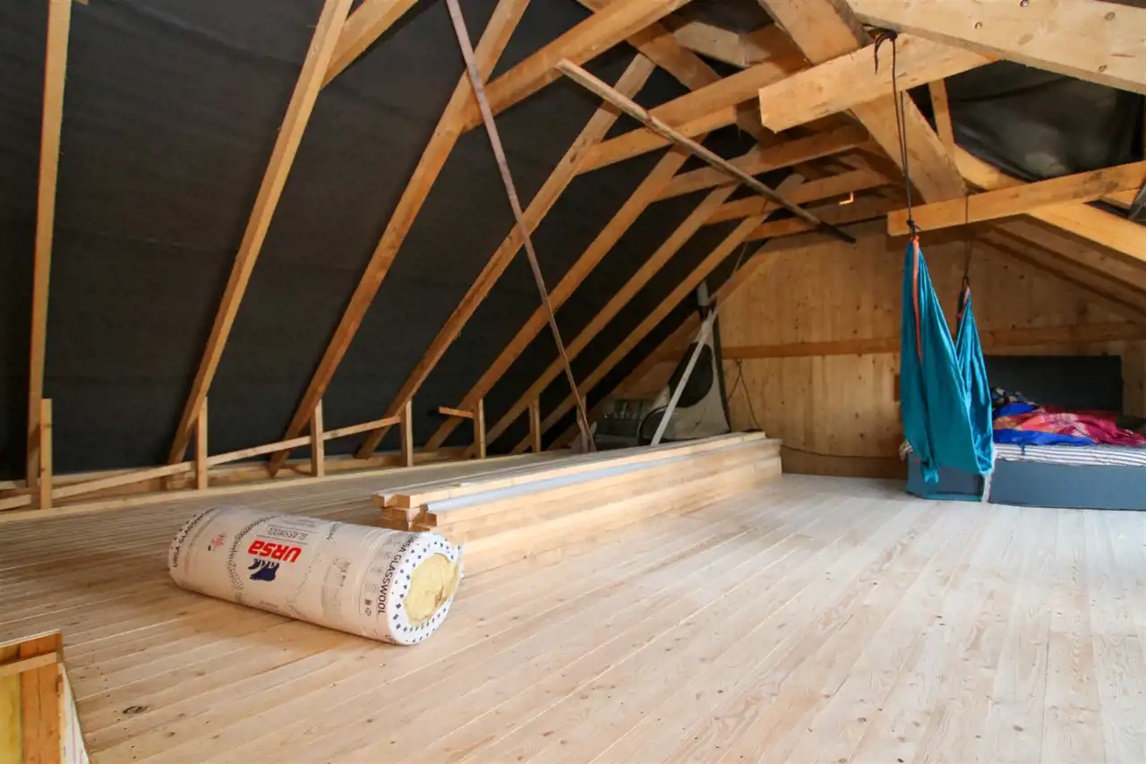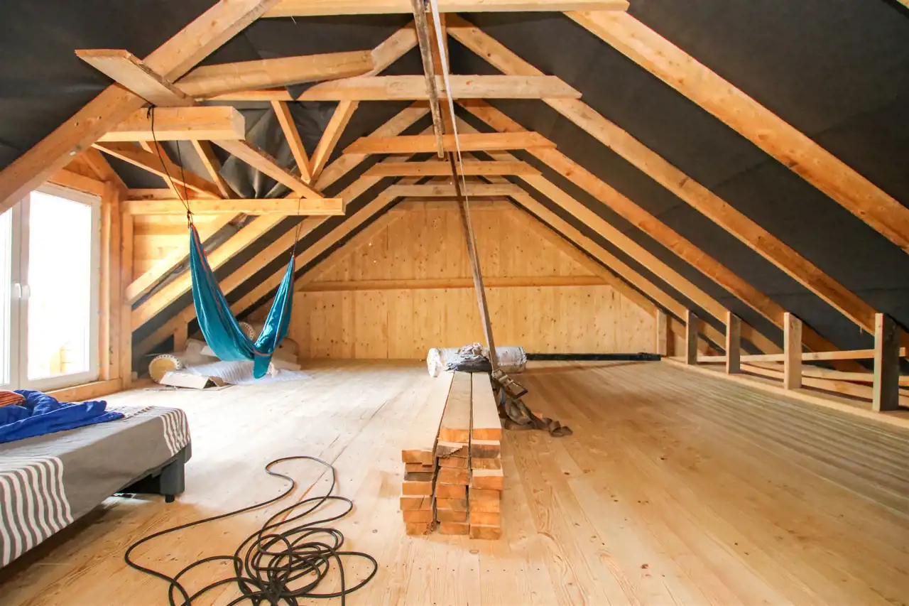 - otwarta przestrzeń do adaptacji – możliwość wydzielenia sypialni, gabinetu i łazienki a także strefy relaksu, estetyczne wykończenie w drewnie,