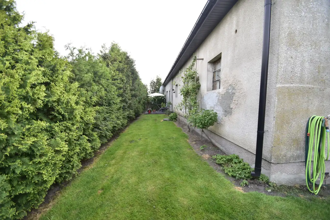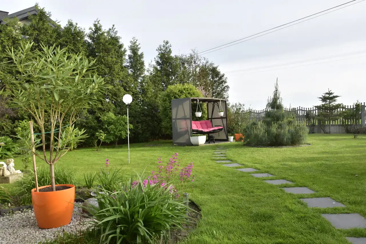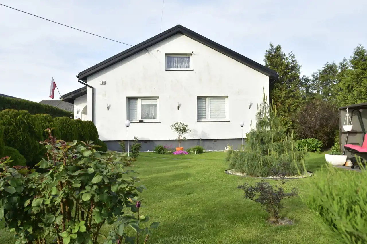 Dom znajduje się na działce o powierzchni 1390 m2 z zadbanym ogrodem.