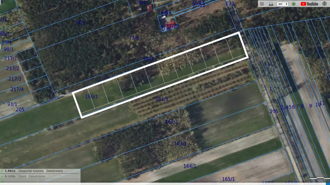 Oferujemy tę działkę do sprzedaży w całości, jednakże nabywca może podzielić działkę na co najmniej 12 mniejszych działek o powierzchni około 1300 m2 (szerokość 30m) i przygotować je do dalszej odsprzedaży. Minimalna powierzchnia działki to 1000 m2.