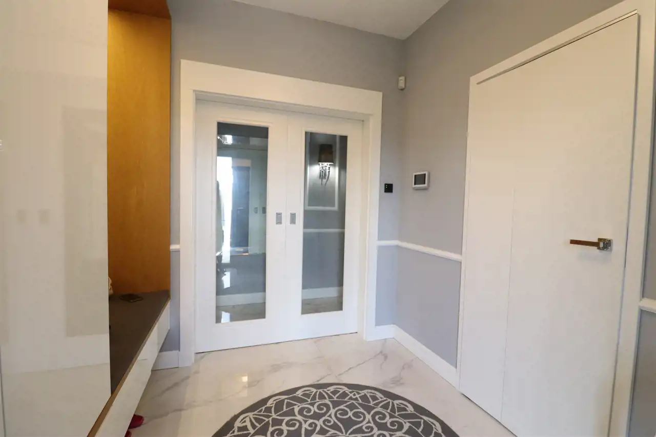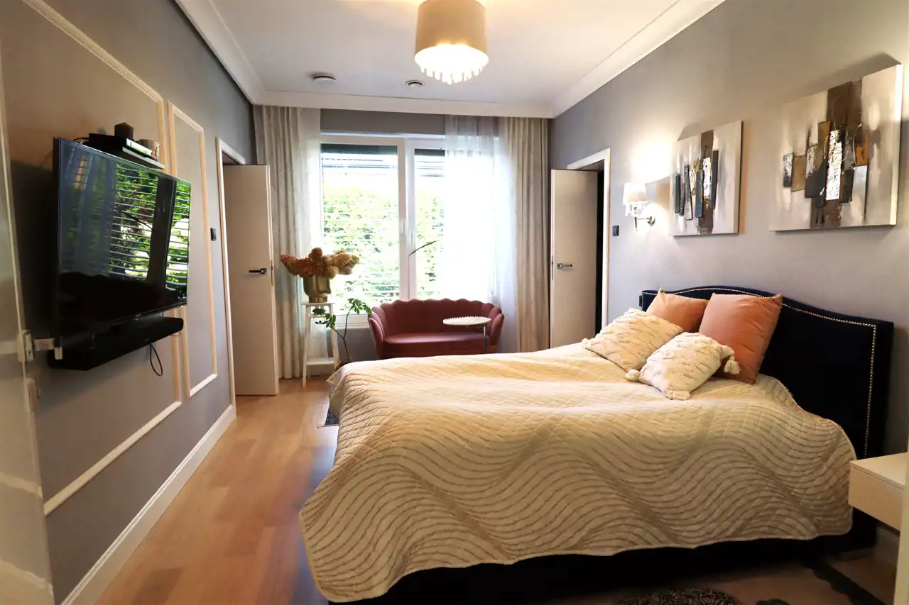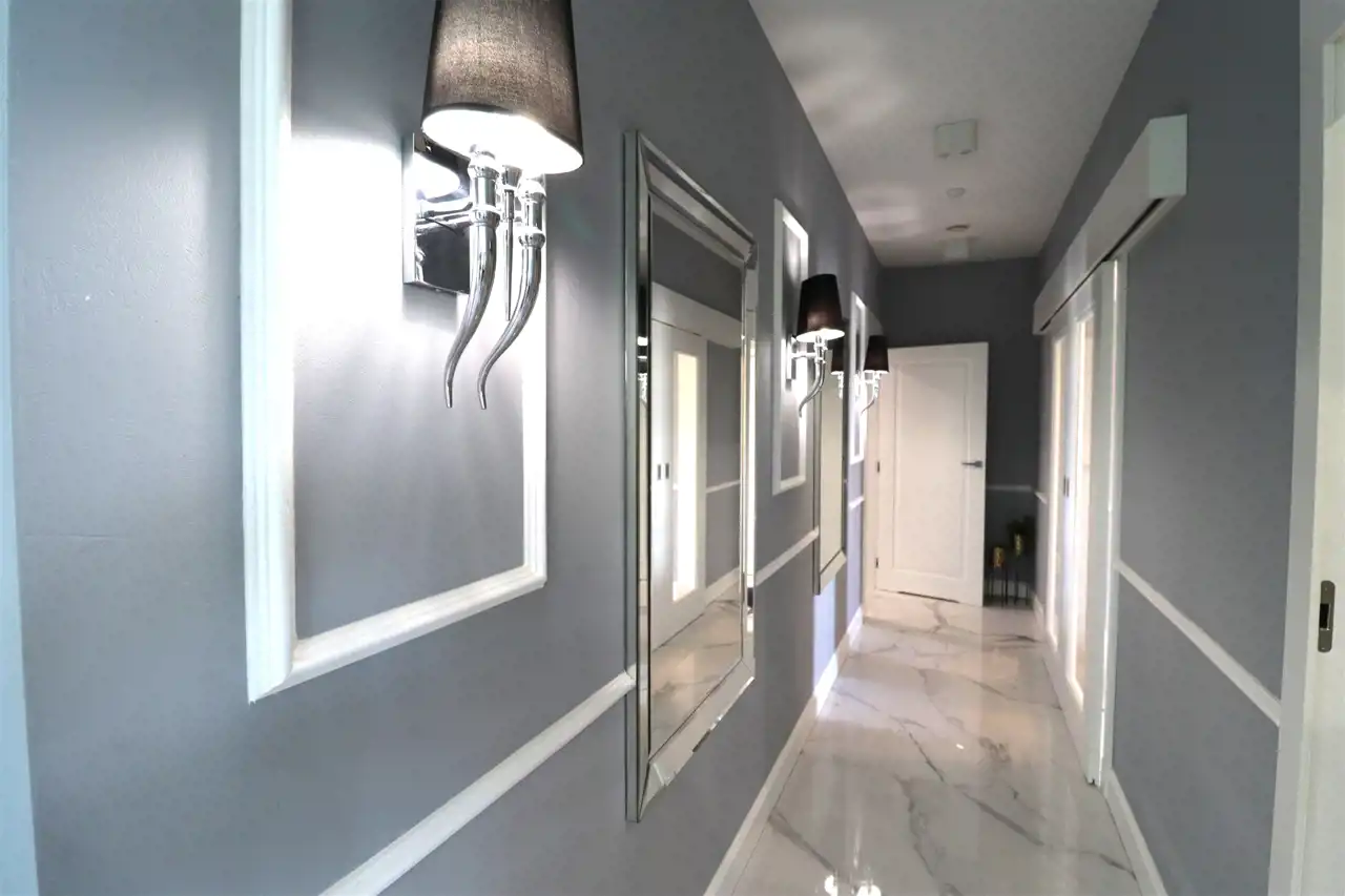 Wysoki standard pomieszczeń - materiały dobrej klasy i jakości : podłogi w sypialniach drewniane, w łazienkach i hallu płytki calacata 120x120. Wszystkie pomieszczenia wyposażone w kilka rodzajów dodatkowego oświetlenia.
