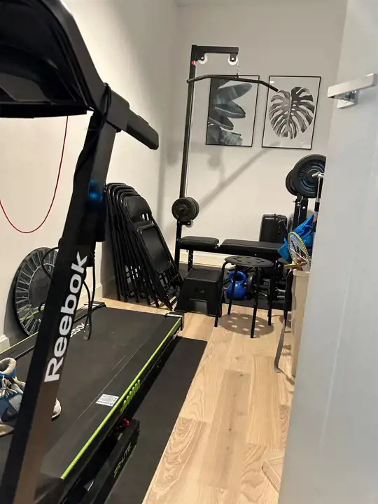 W układzie pomieszczeń zaprojektowano; przedsionek, część dzienną - stanowi ją obszerny salon z jadalnią otwarty na kuchnię i łazienka dla gości oraz strefę wypoczynku czyli 3 sypialnie z garderobami, siłownię, pokój kąpielowy, korytarz.