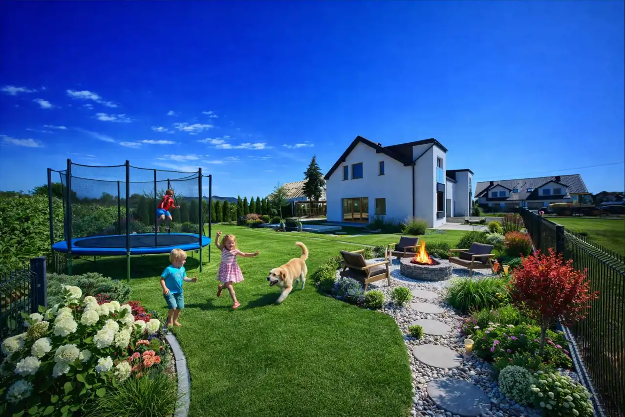 - Bezpieczeństwo ogrodzenie działki: ogrodzona