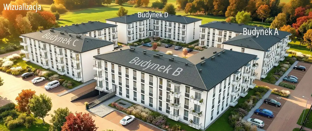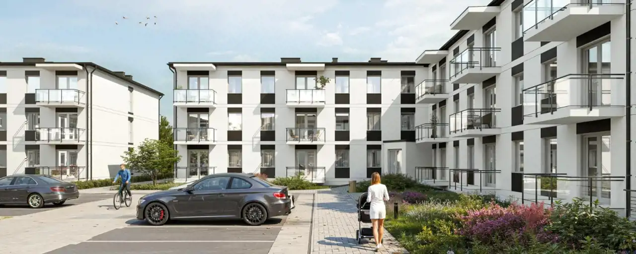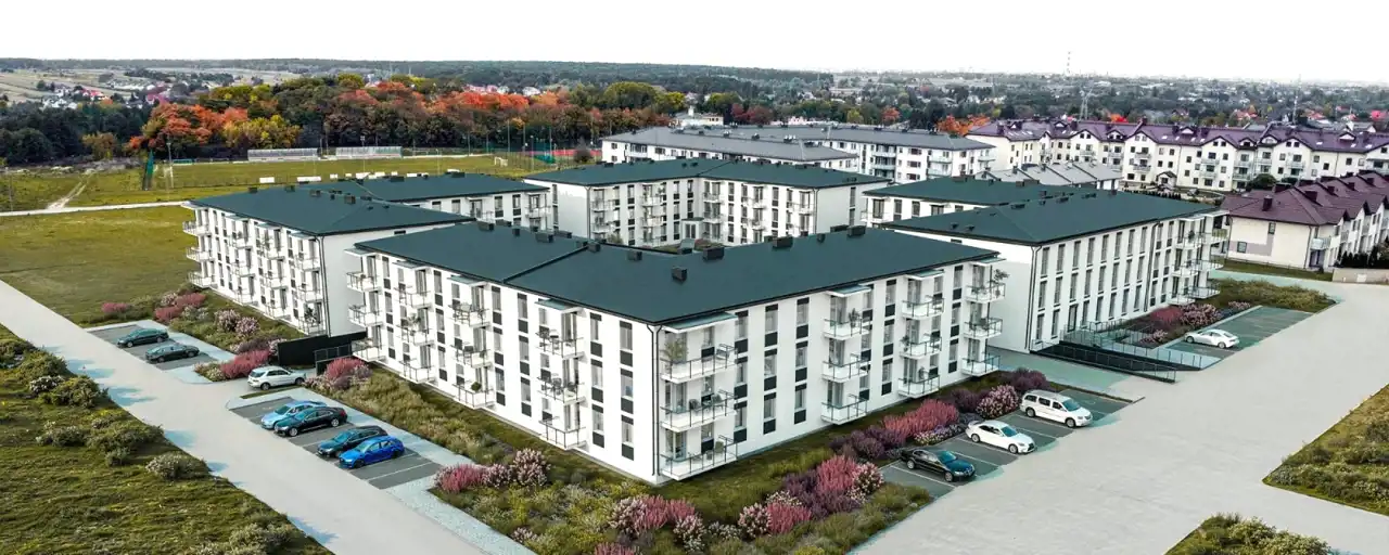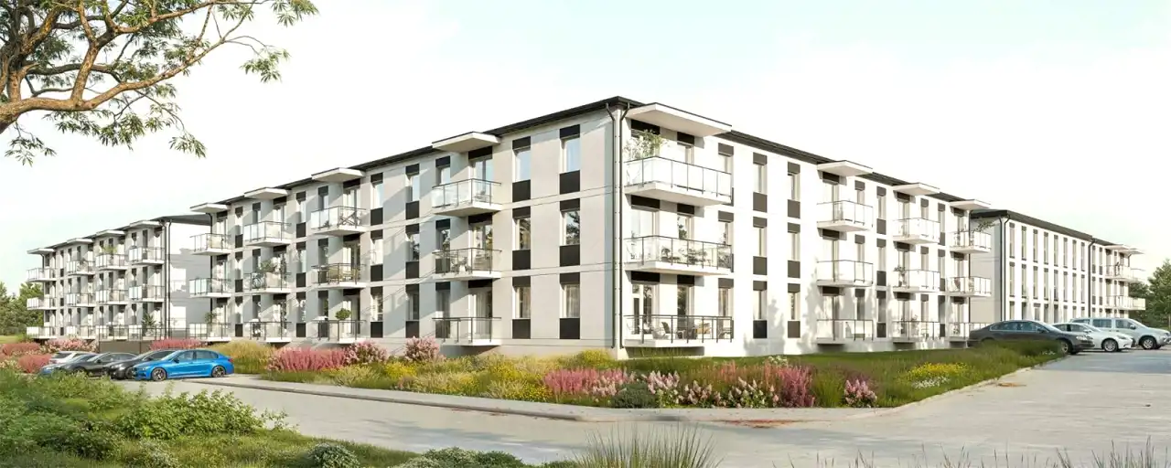 W ofercie mieszkania 2-, 3-, i 4-pokojowe o pow. od 33 m² do 67 m² w niskiej dwupiętrowej zabudowie. Kompleks obejmuje 4 budynki z naziemnymi i podziemnymi miejscami parkingowymi