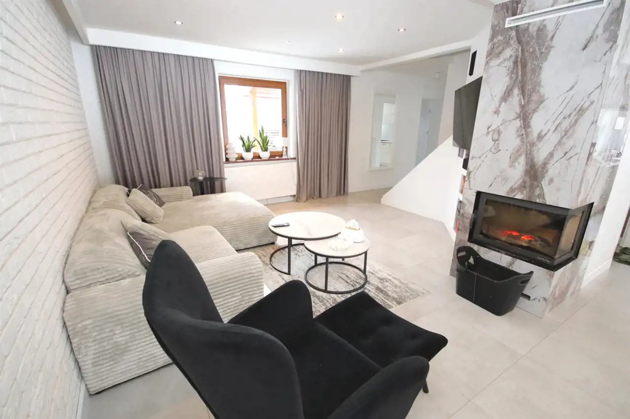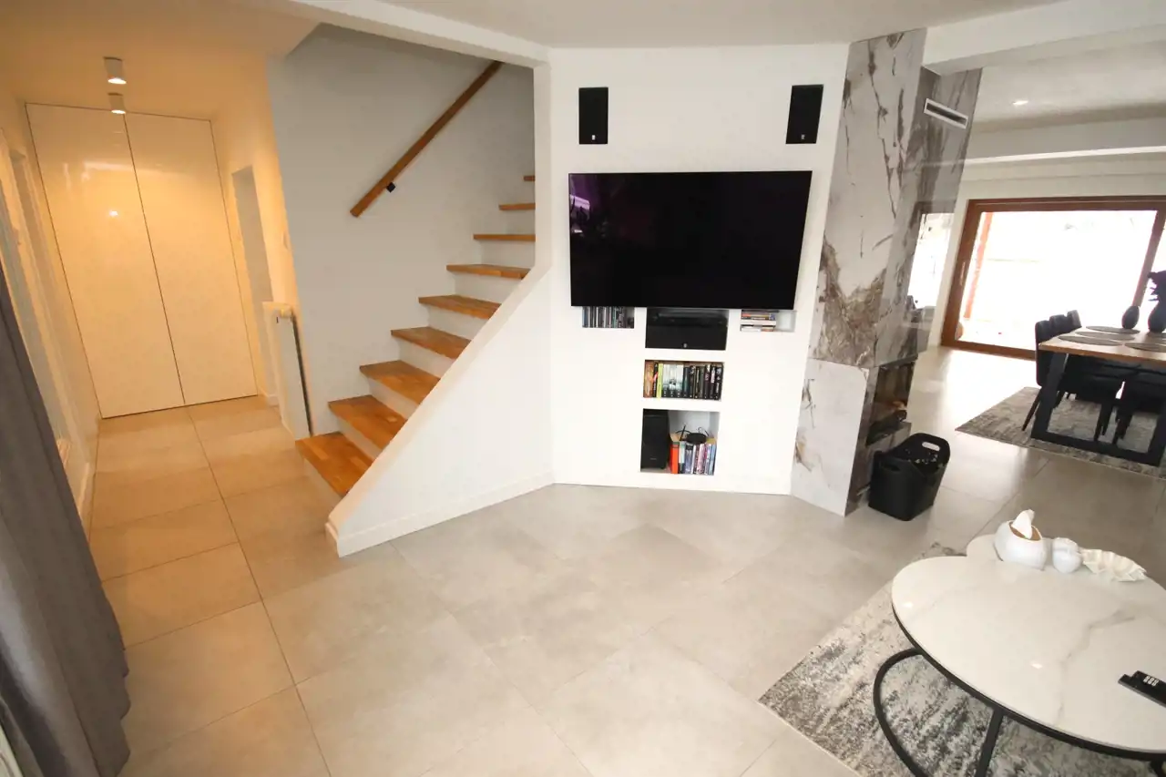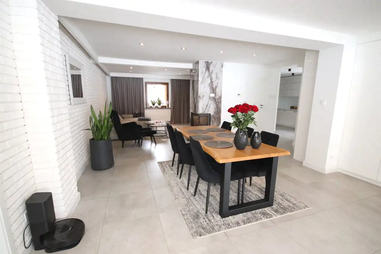 - przestronny słoneczny salon z kominkiem i wyjściem na taras,