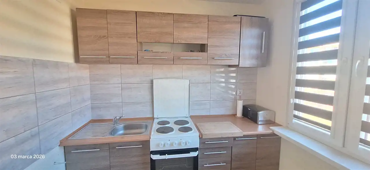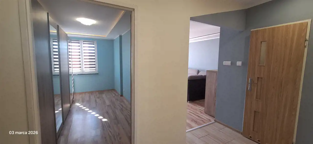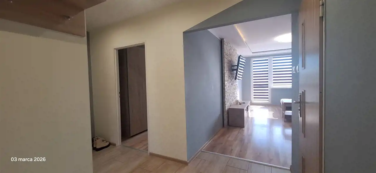Salon z wyjściem na balkon, z pięknymi widokami i przestrzenią gdzie nic się już nie wybuduje, sypialnia z łóżkiem , pokój z szafą, łazienka, wc, kuchnia, przedpokój,
