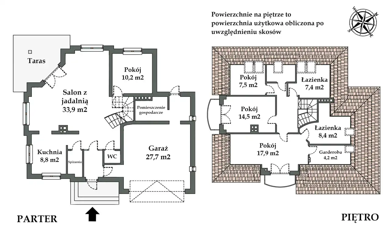 - Woda z sieci gminnej, ścieki odprowadzane do przydomowej oczyszczalni