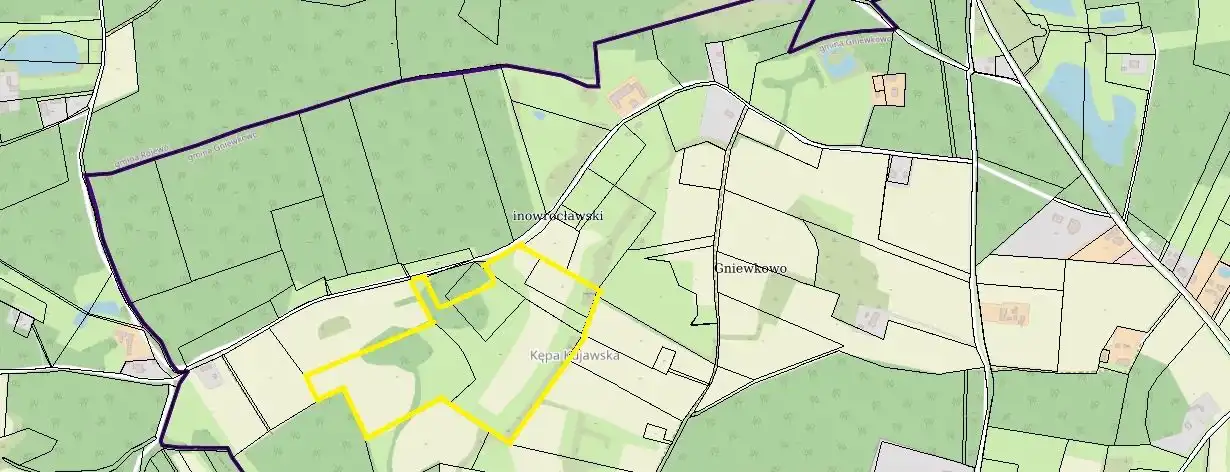 Na sprzedaż działka o powierzchni 7,9600 ha - grunty rolne niezabudowane, składająca się z 5 - ciu przyległych działek w miejscowości Kępa Kujawska (gmina Gniewkowo, powiat inowrocławski, woj. kujawsko-pomorskie). Działka o nieregularnym kształcie.