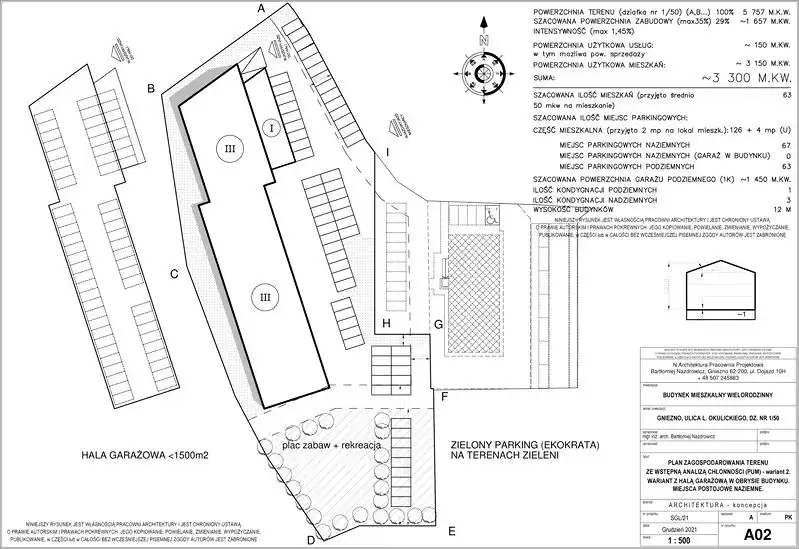 Załączam wstępną koncepcję możliwości zagospodarowania terenu z powierzchnią na poziomie ok 3300 m2 PUM.