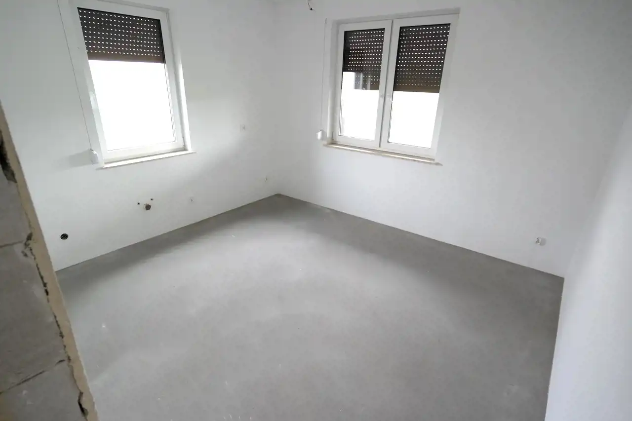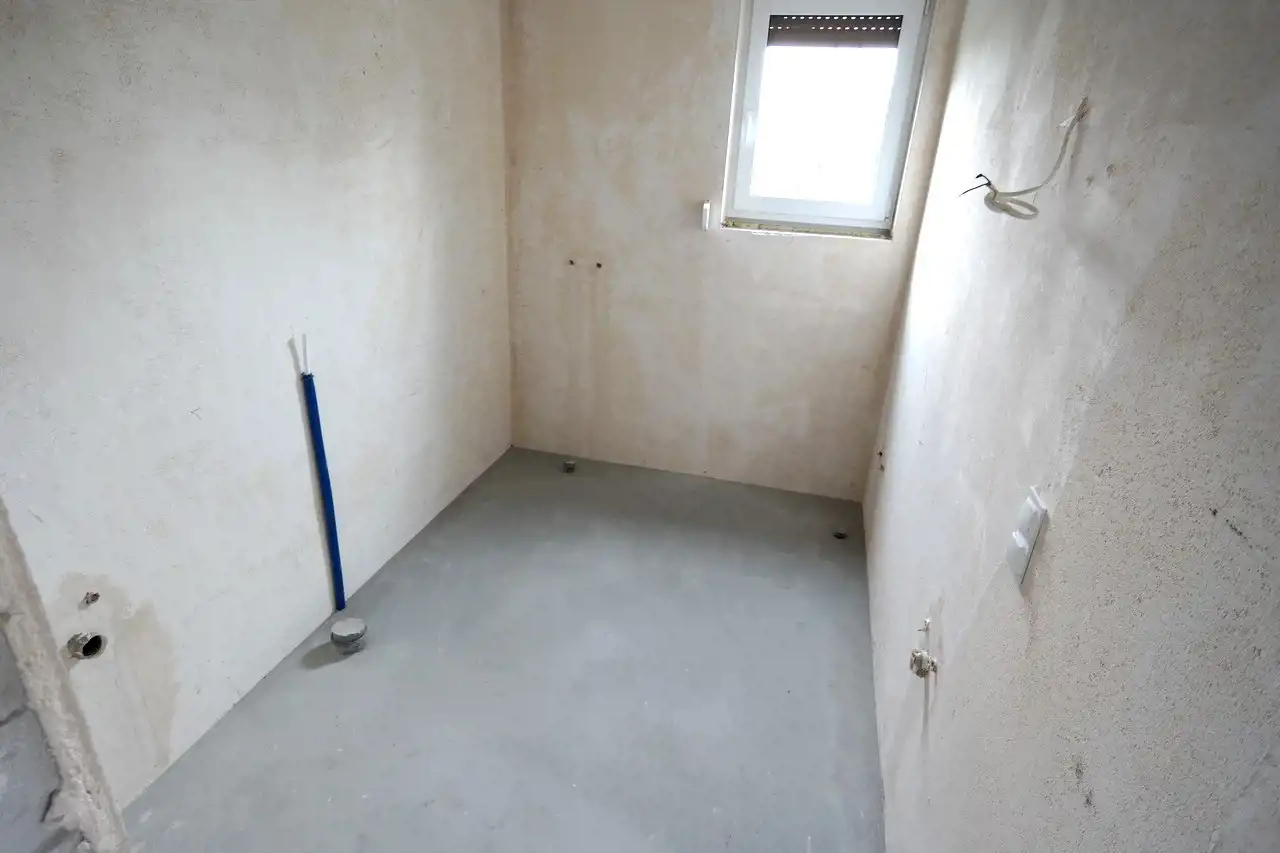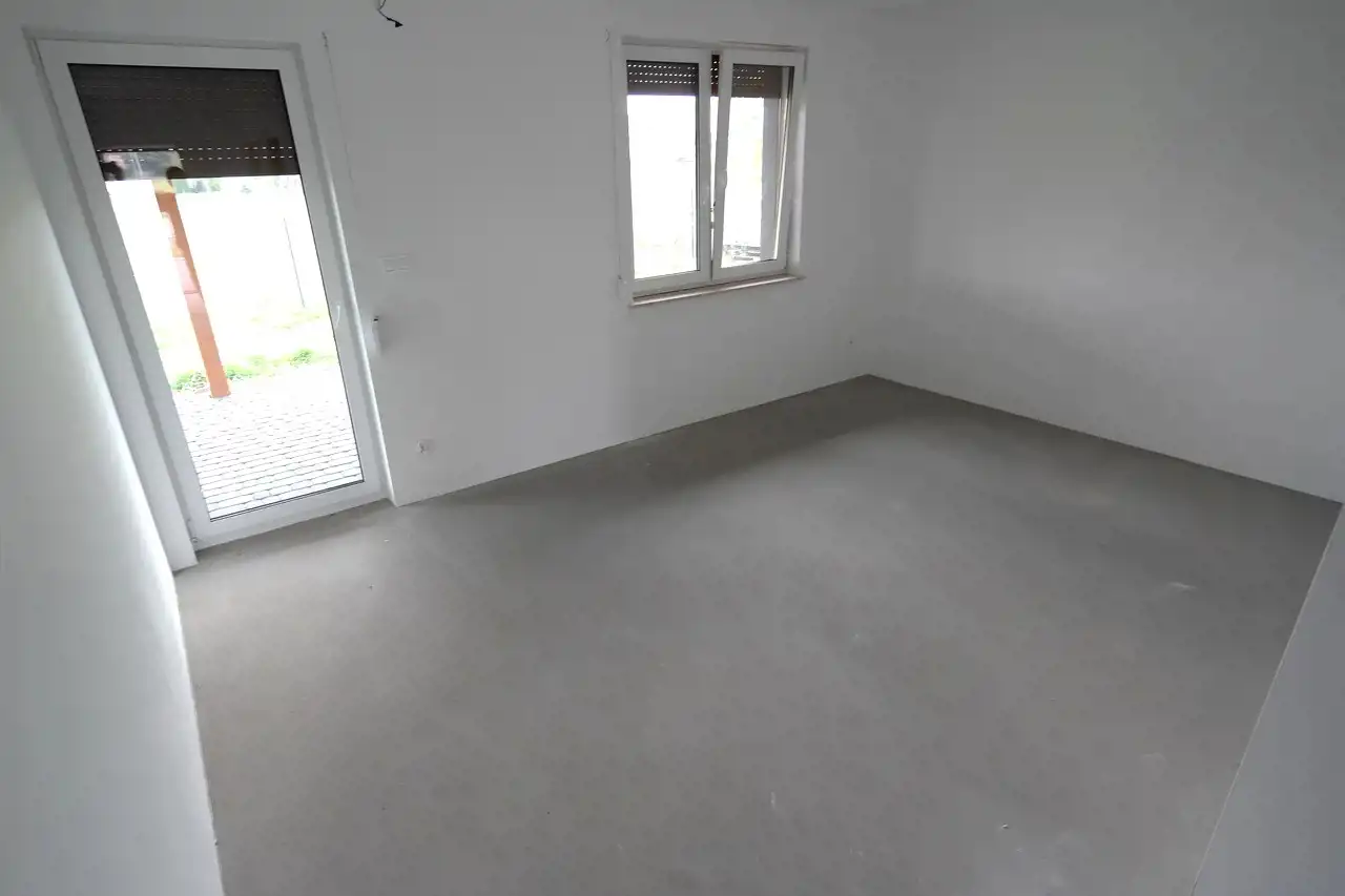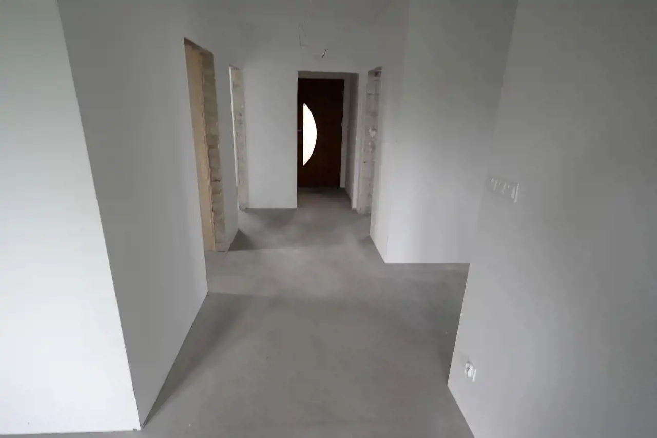 Nowe mieszkanie. Stan deweloperski. Z dużym potencjałem. Jedno poziomowy. Docieplony styropianem i wełną mineralną 20 cm. Poddasze nieużytkowe. Okna PCV 3 szybowe. Duży taras z widokiem na ogródek. W pokojach wylewki betonowe. Gładzie na ścianach. Aneks kuchenny połączony z salonem, łazienka z WC do aranżacji. Drzwi antywłamaniowe. Duży salon z aneksem i wyjściem na taras. Miejsce na kominek. Dwie lub trzy sypialnie. Miejsce parkingowe przed domem. Działka ok 800 m2 z ogródkiem. Część zdjęć przykładowych aranżacji.