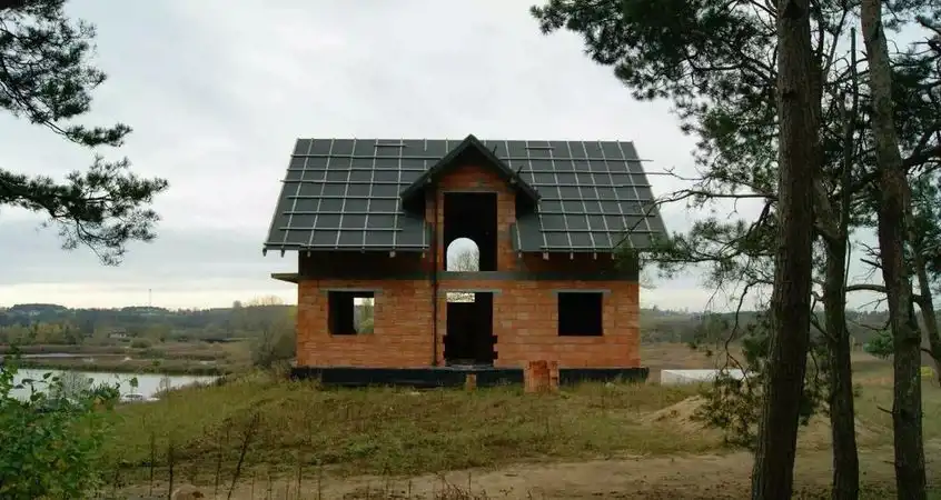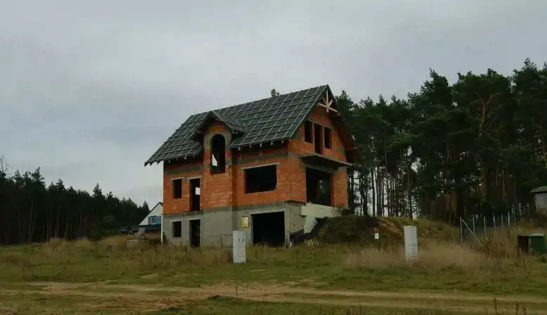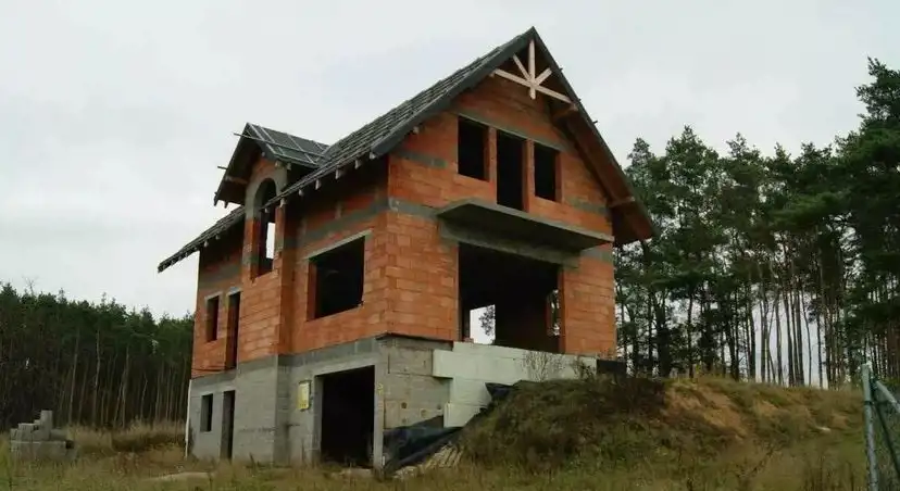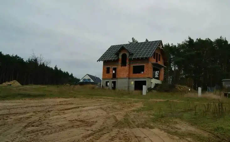 Dom w stanie surowym zamkniętym malowniczo położony pod lasem na Osiedlu Przy Rybakówce między Jeziorem Jankowskim a Jeziorem Wierzbiczańskim, nad rozlewiskami rzeki Wełny. Dom budowany według projektu ARCHON Dom w Lukrecji lustrzane odbicie wersja Termo, do którego dodano przyziemie, które może stanowić dodatkową część mieszkalną dla dziadków, opiekunki, gości czy turystów z osobnym wejściem.