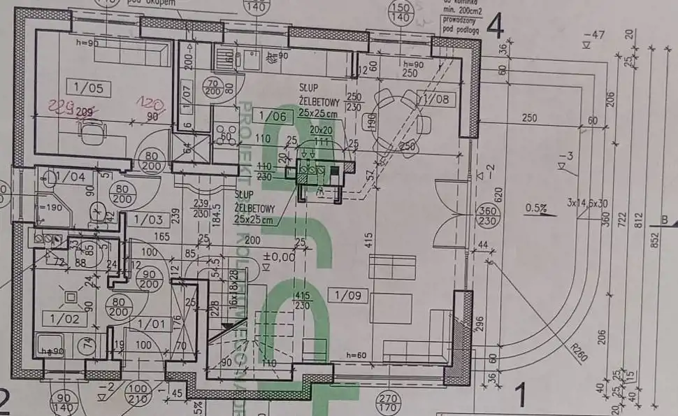 - Material konstrukcyjny cegła, pustak ceramiczny poroterm