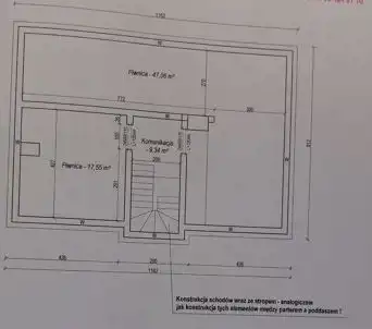 komunikacja 10m2, łazienka 11m2, pokój 18 m2, pokój 17m2, pokój 11m2.