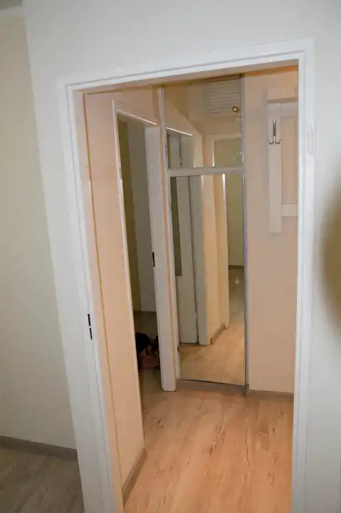 Zabudowane szafy w pokoju i przedpokoju, zapewniające dużo miejsca do
