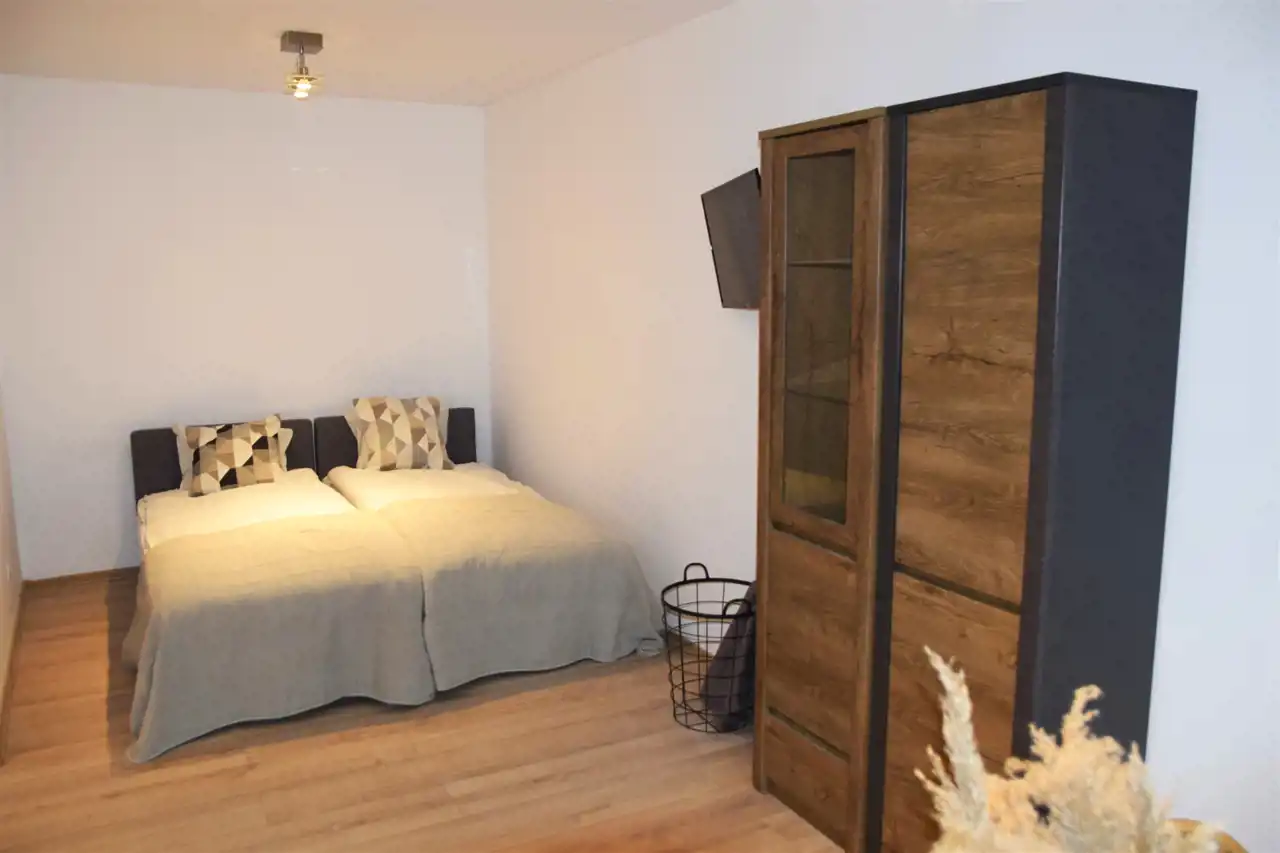 - Wykończenie: Wysokiej jakości materiały, nowoczesne meble oraz sprzęt AGD. Całość wykończona w ciemnym drewnie i brązowej cegle, co tworzy wyjątkową atmosferę w drewnianym stylu.