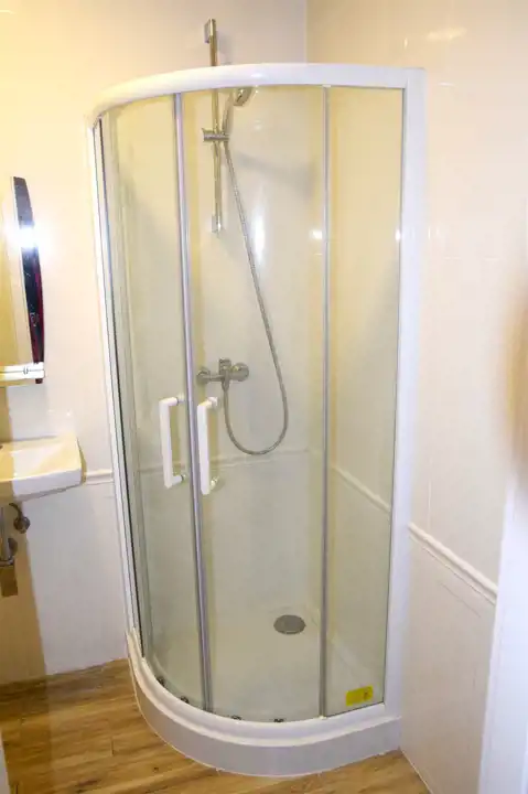 - Łazienka: W pełni wyposażona, nowoczesna łazienka z kabiną prysznicową, umywalką i WC.