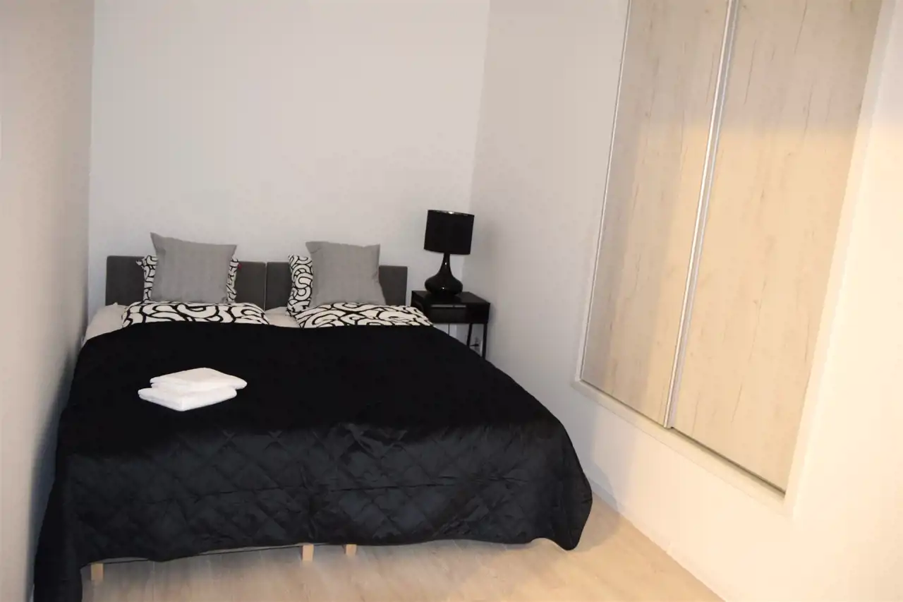 - Pokój dzienny: Przestronny i jasny, połączony z nowoczesnym aneksem kuchennym. W części dziennej znajduje się część wypoczynkowa, jadalnia oraz wydzielona strefa sypialniana, co zapewnia funkcjonalność i komfort użytkowania.