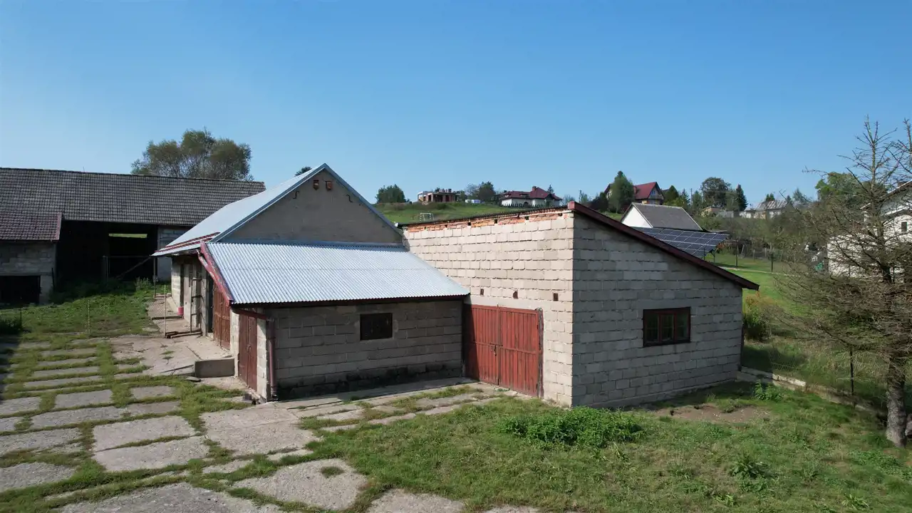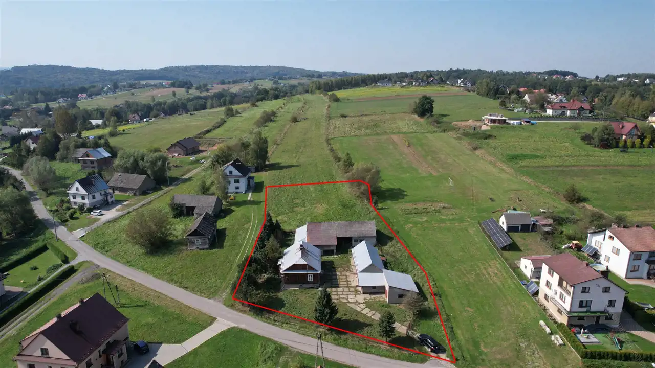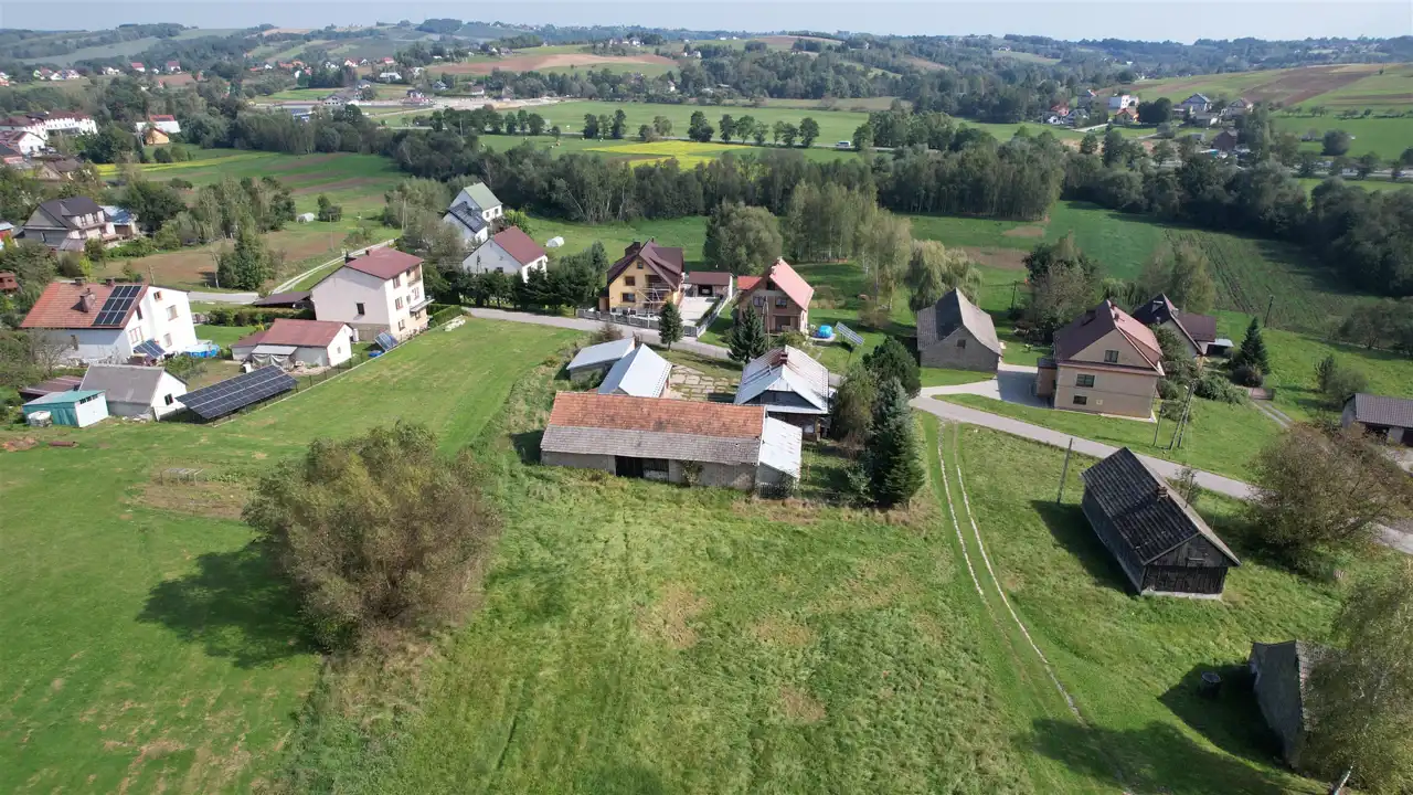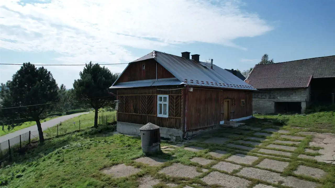 Atrakcyjna, widokowa działka budowlana w sąsiedztwie luźnej zabudowy jednorodzinnej. Na działce dom drewniany, nie zamieszkały (do remontu lub wyburzenia) oraz zabudowania gospodarcze ( murowana stodoła i garaż)