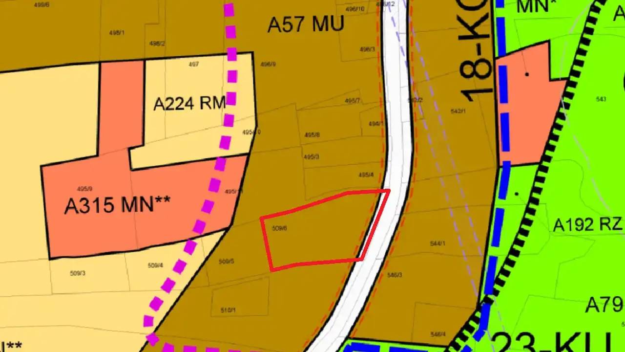 Działka w terenie objętym miejscowym planem zagospodarowania przestrzennego gminy Gnojnik (oznaczenie w planie: A57MU ), pod zabudowę jednorodzinną w zabudowie wolnostojącej.