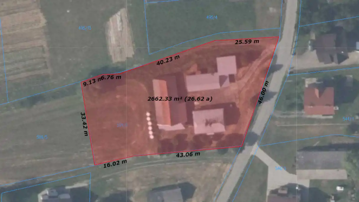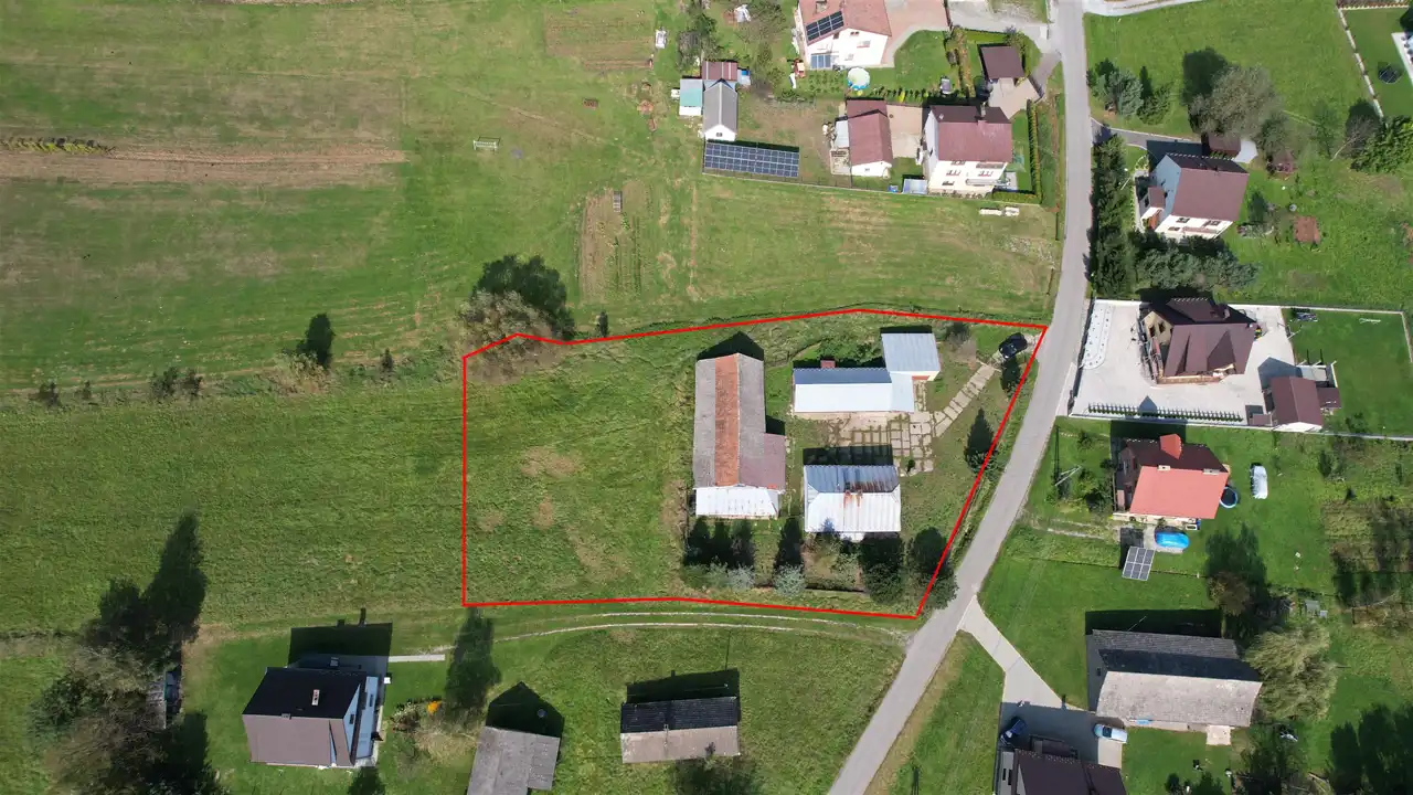Gnojnik, Działka budowlana o pow.: 2700 m2, z domem drewnianym i zabudowaniami gospodarczymi.