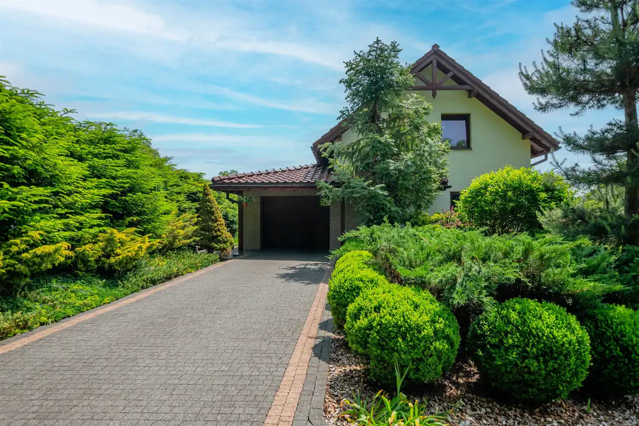 Na terenie posesji znajduje się duży, pięknie zagospodarowany ogród, który łączy estetykę z funkcjonalnością.