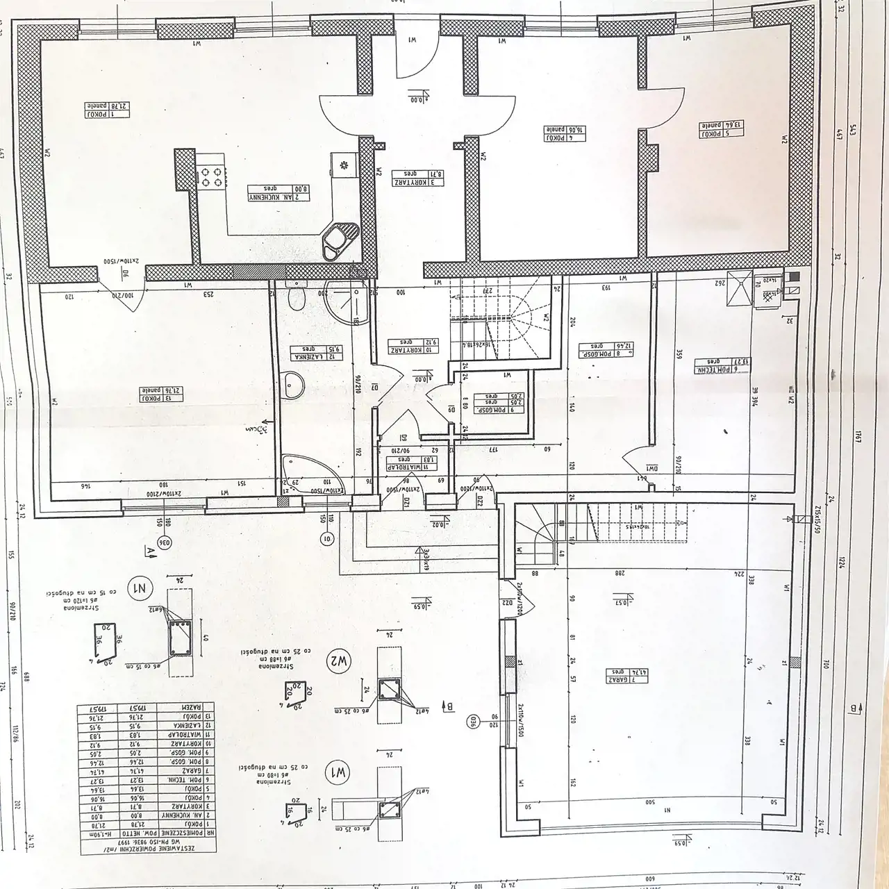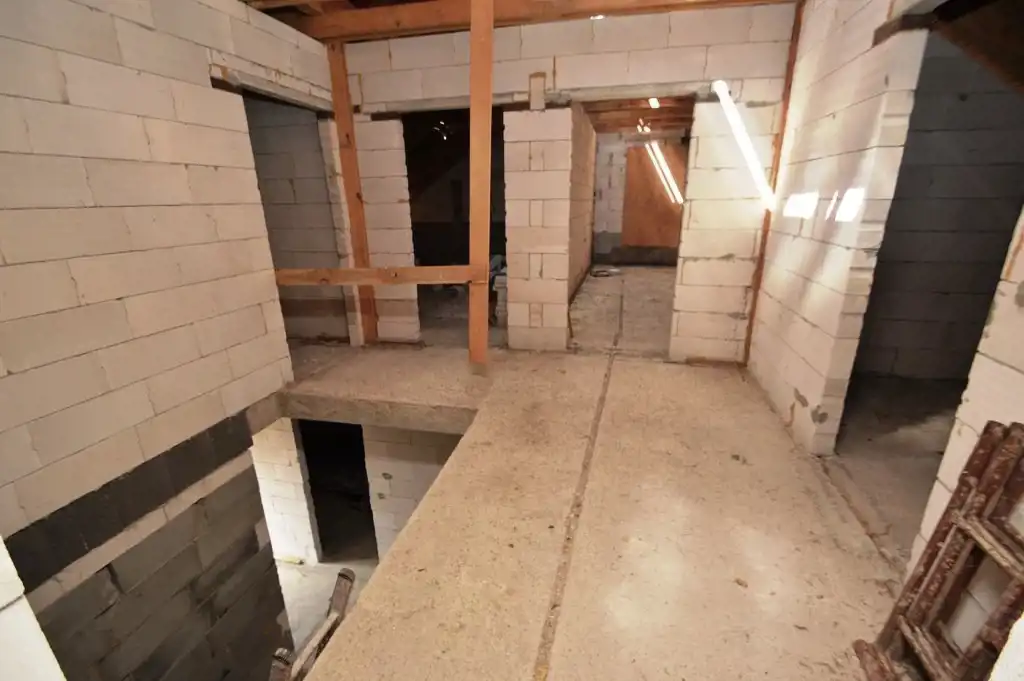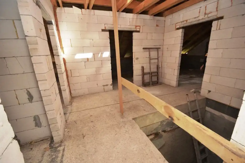 Budynek mieszkalny jest wybudowany na fundamentach i częściowych murach z czerwonej cegły istniejącego tam kiedyś budynku oraz rozbudowany o nową część. Prowadzona jest pełna dokumentacja rozbudowy budynku wraz z projetem.