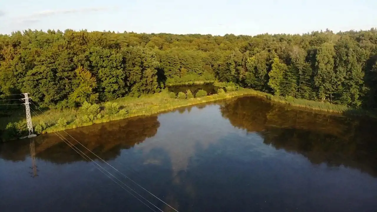 Działka zagospodarowana stawami. Teren w całości ogrodzony.