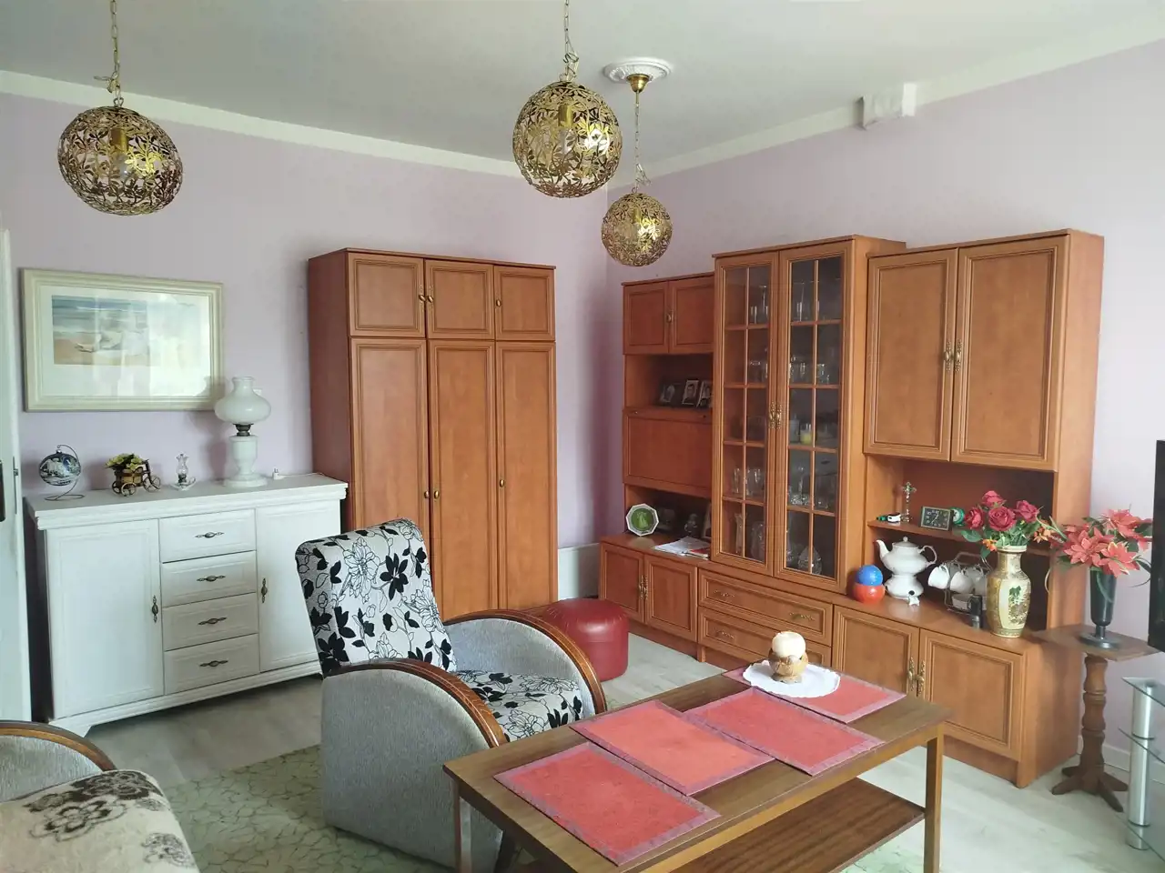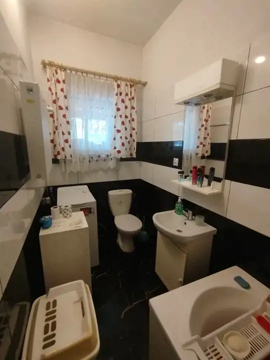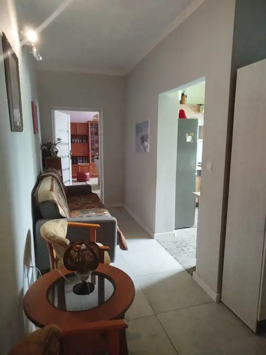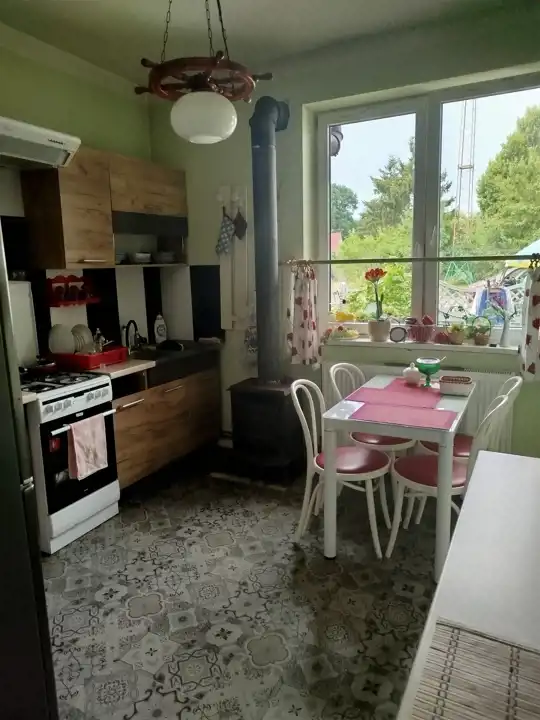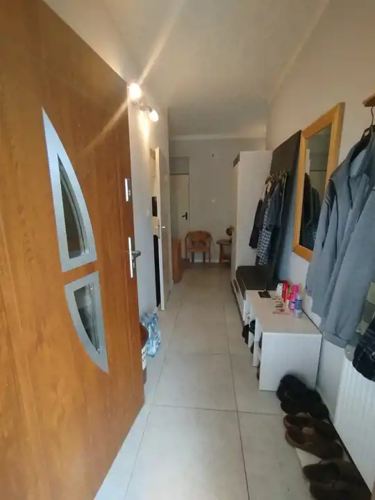 Zagospodarowane mieszkanie, w którym znajdują się 2 pokoje, gdzie w jednym z pokoi jest wnęka z dodatkowym pomieszczeniem, znakomicie nadającym się na garderobę, przedpokój, jasna kuchnia z oknem, łazienka połączona razem z WC, wyposażona w wannę. Dodatkowo z przedpokoju prowadzą drzwi do następnej części mieszkalnej, która nadaje się do generalnego remontu. Aktualnie pomieszczenia znajdujące się w tej części to korytarz, z którego także prowadzi wyjście na ogrodzone podwórko, 3 pokoje (w tym jeden pokój przejściowy) oraz pomieszczenie gospodarcze użytkowane jako spiżarnia.