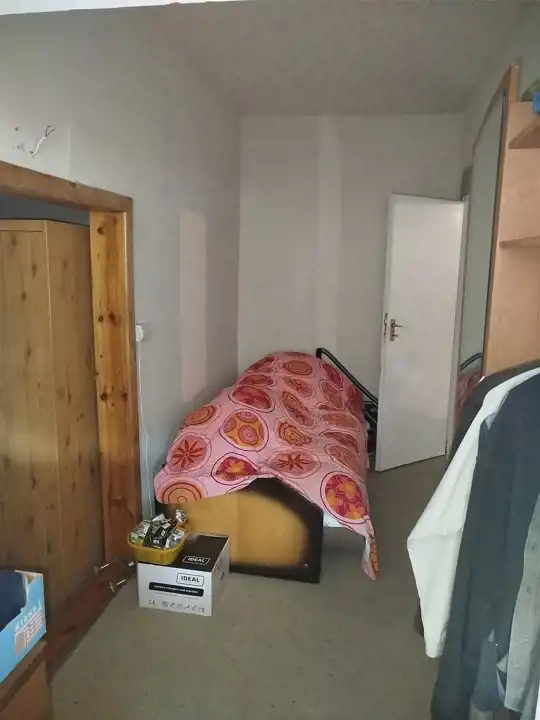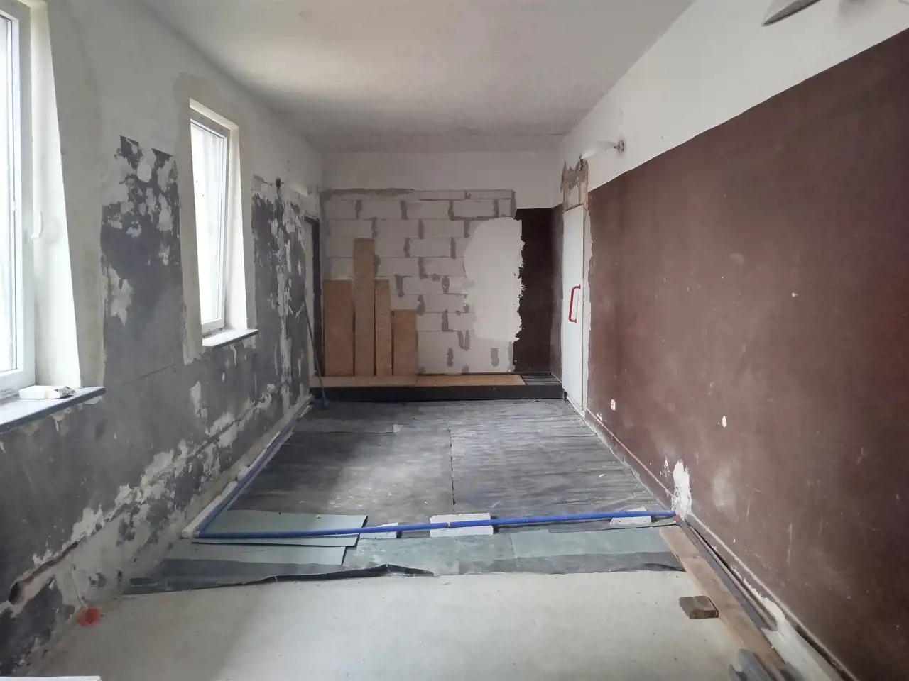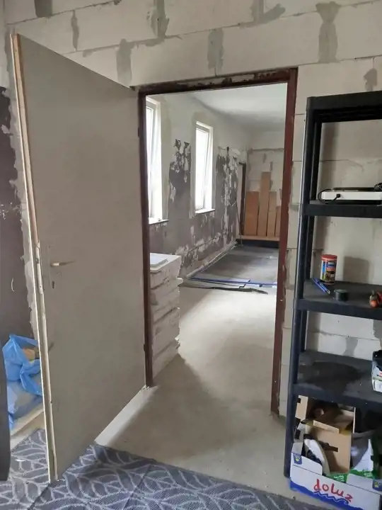 Kolejne mieszkanie nadające się do generalnego remontu, gdzie znajdują się 2 pokoje, przedpokój, łazienka, WC oraz korytarz wejściowy z ogrodzonej części małego ogródka. Do mieszkania prowadzi także drugie wejście z garażu.