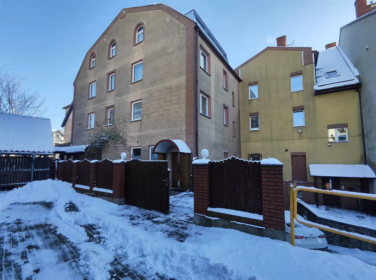 Na sprzedaż komfortowy dom jednorodzinny z funkcją handlowo - usługową o powierzchni użytkowej około 488 m2, położony na Mazurach w ścisłym centrum Gołdapi przy ulicy Krzywej.